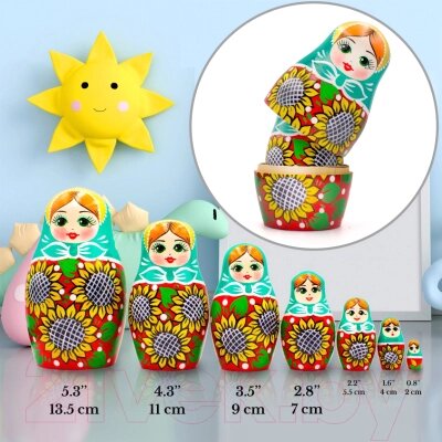 Матрешка сувенирная Брестская Фабрика Сувениров С нарисованными вручную цветами подсолнуха 7020