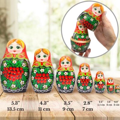 Матрешка сувенирная Брестская Фабрика Сувениров В сарафане с ветвями рябины и цветами ромашки 7026
