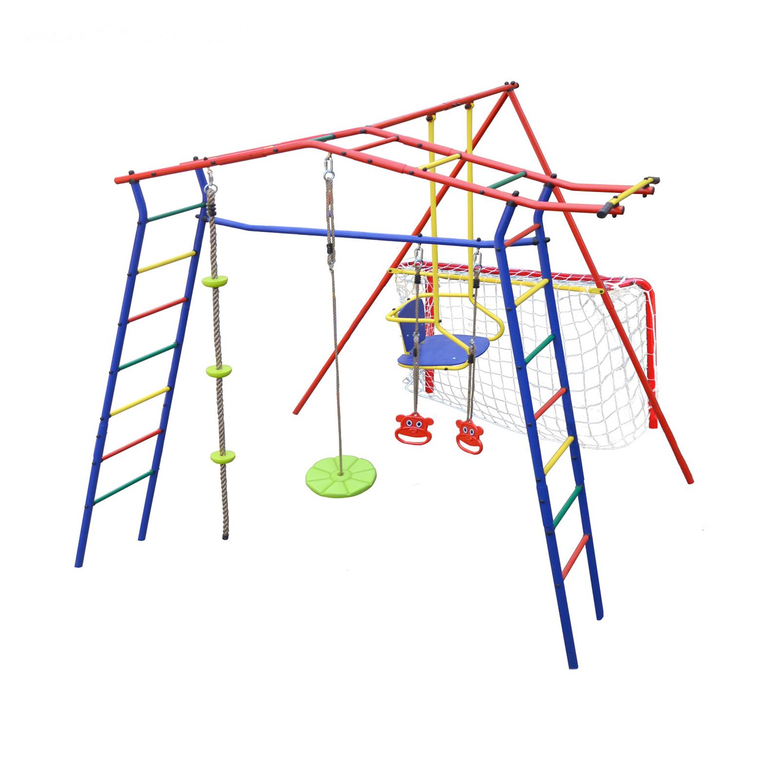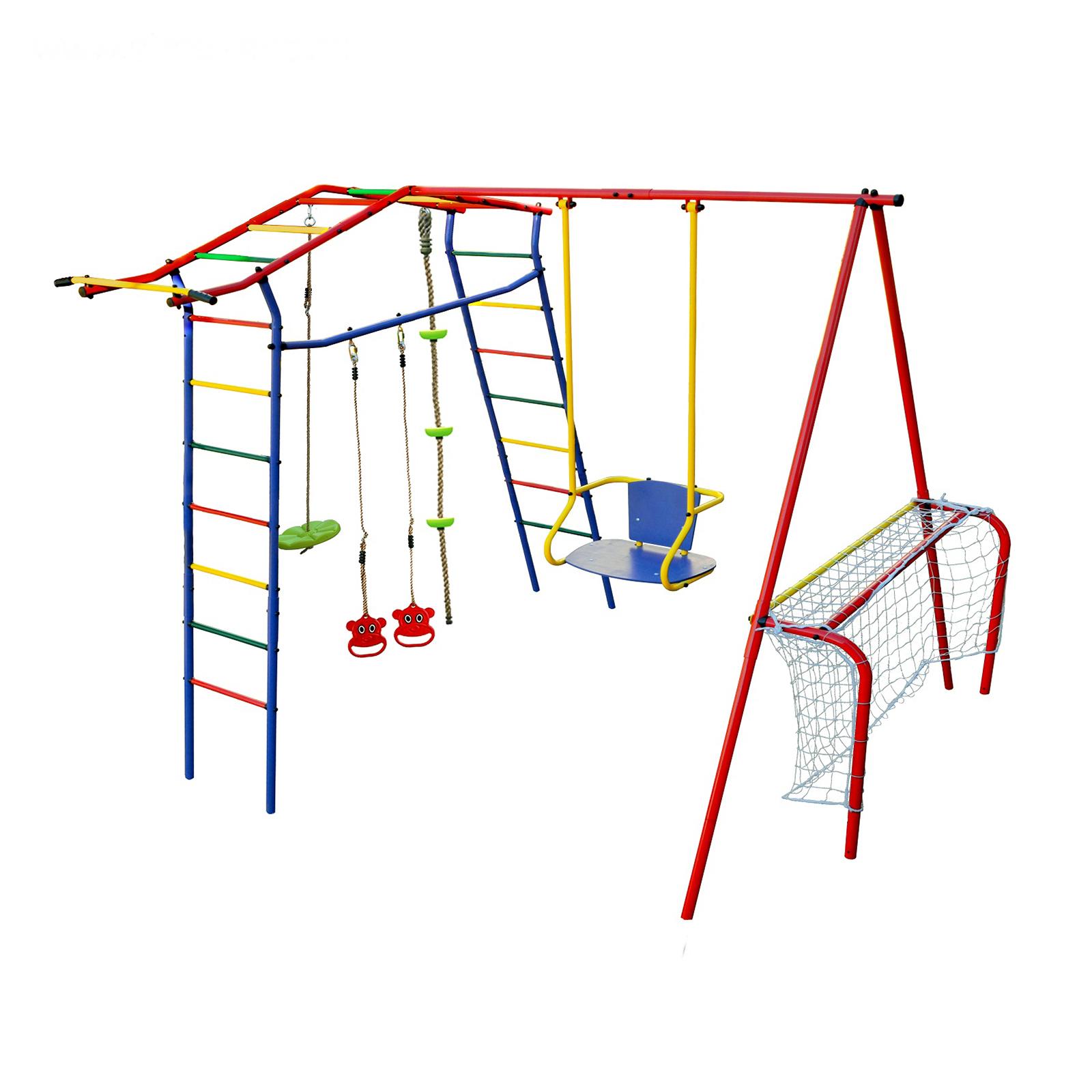 • Комплектация Канат, Качели, Кольца, Нерегулируемый турник, Футбольные ворота