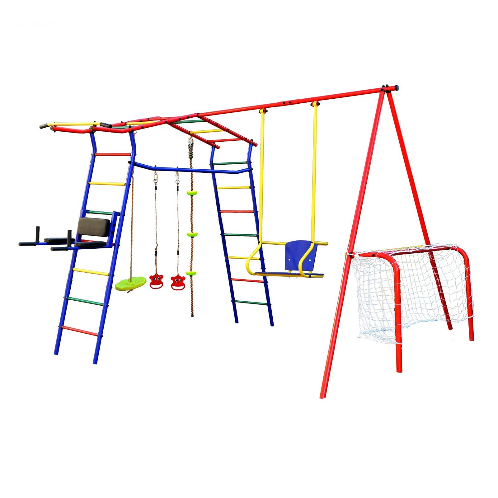 • Комплектация Брусья, Канат, Качели, Кольца, Нерегулируемый турник, Футбольные ворота