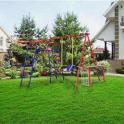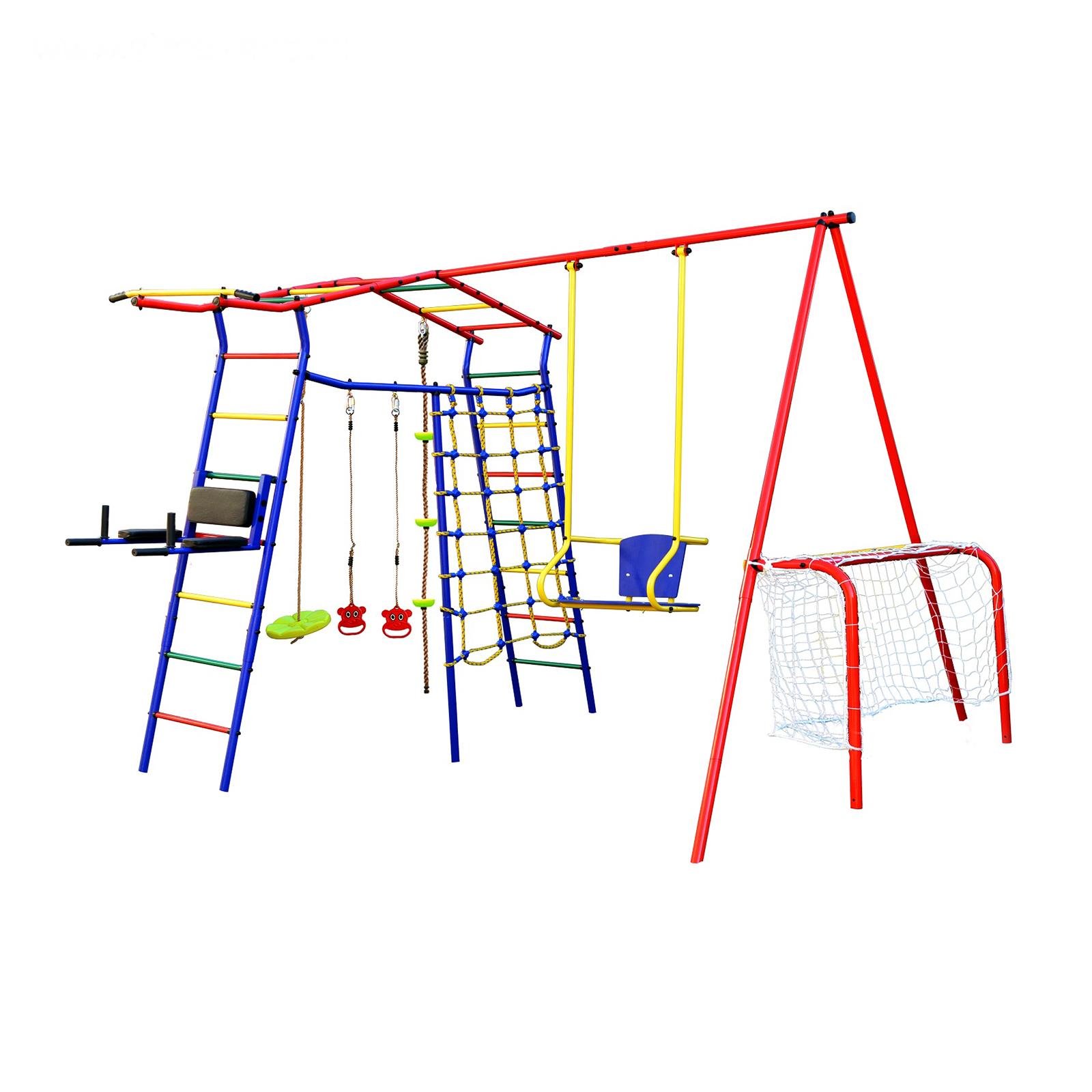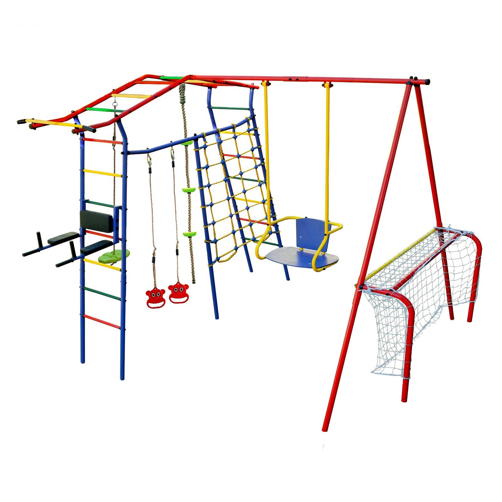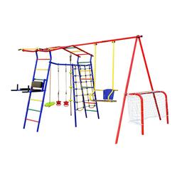 • Комплектация Брусья, Канат, Качели, Кольца, Нерегулируемый турник, Сетка, Футбольные ворота