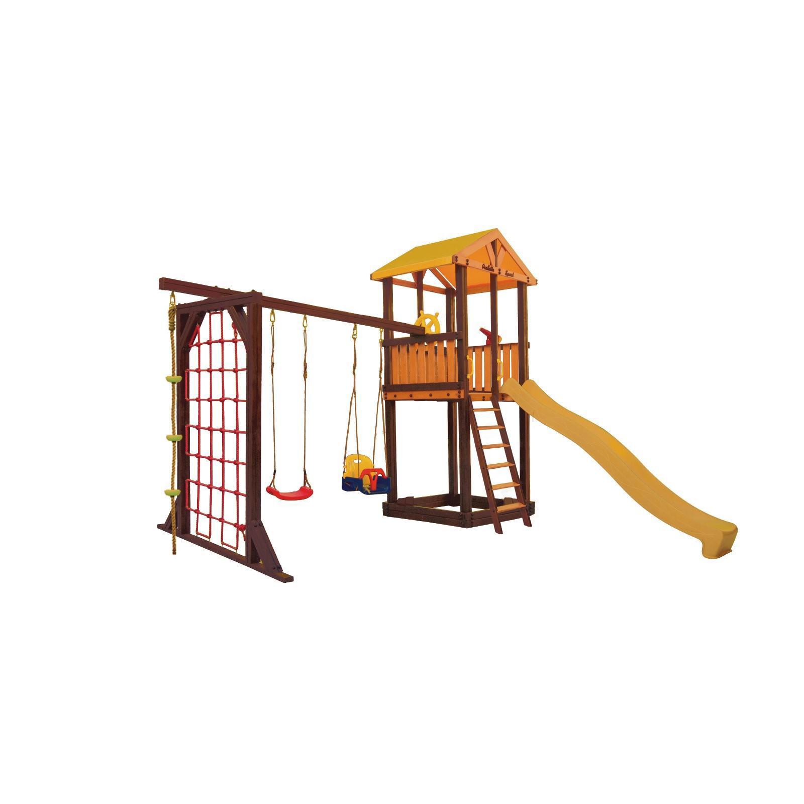 Спортивный комплекс с элементами игровой площадки подходит для укрепления здоровья и активного досуга.