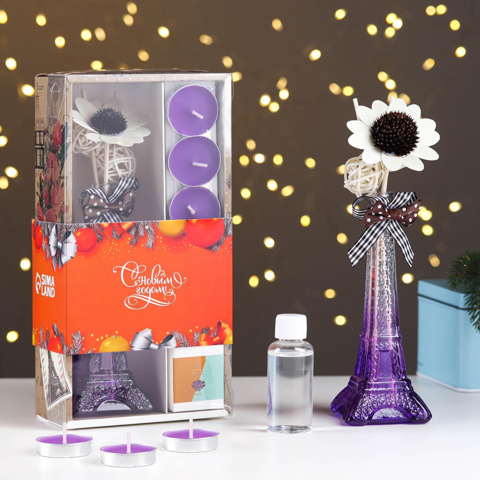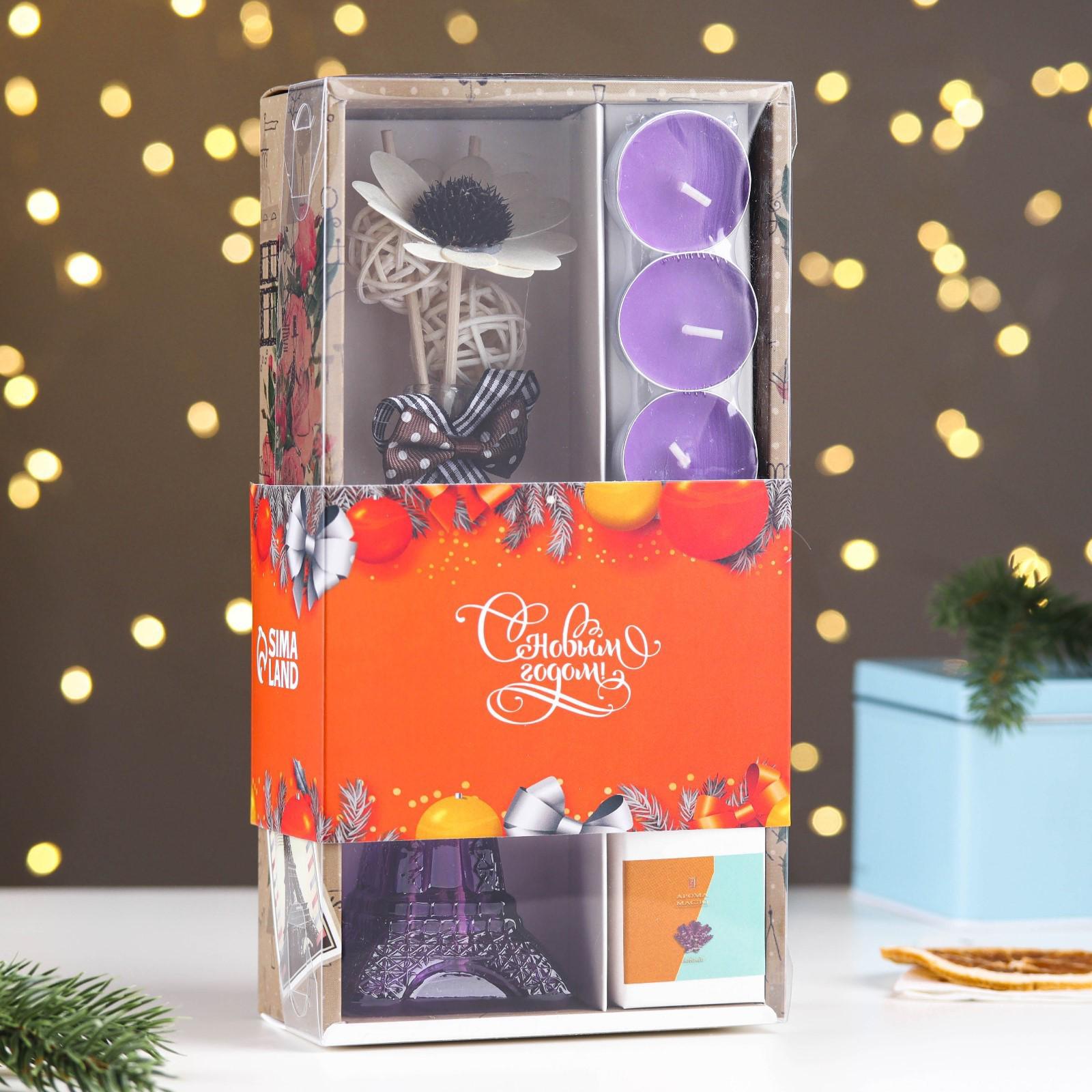 Набор подарочный новогодний "Париж":ваза,свечи,аромамасло лаванда,декор, "Богатство Аромата"