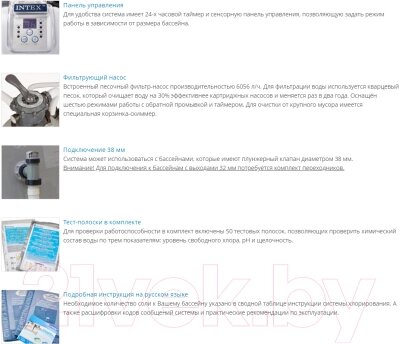 - Комплектация хлоргенератор с фильтр-насосом - 1 шт., гофрированные шланги 38 мм с муфтами - 3 шт., тест-полоски - 50 шт.