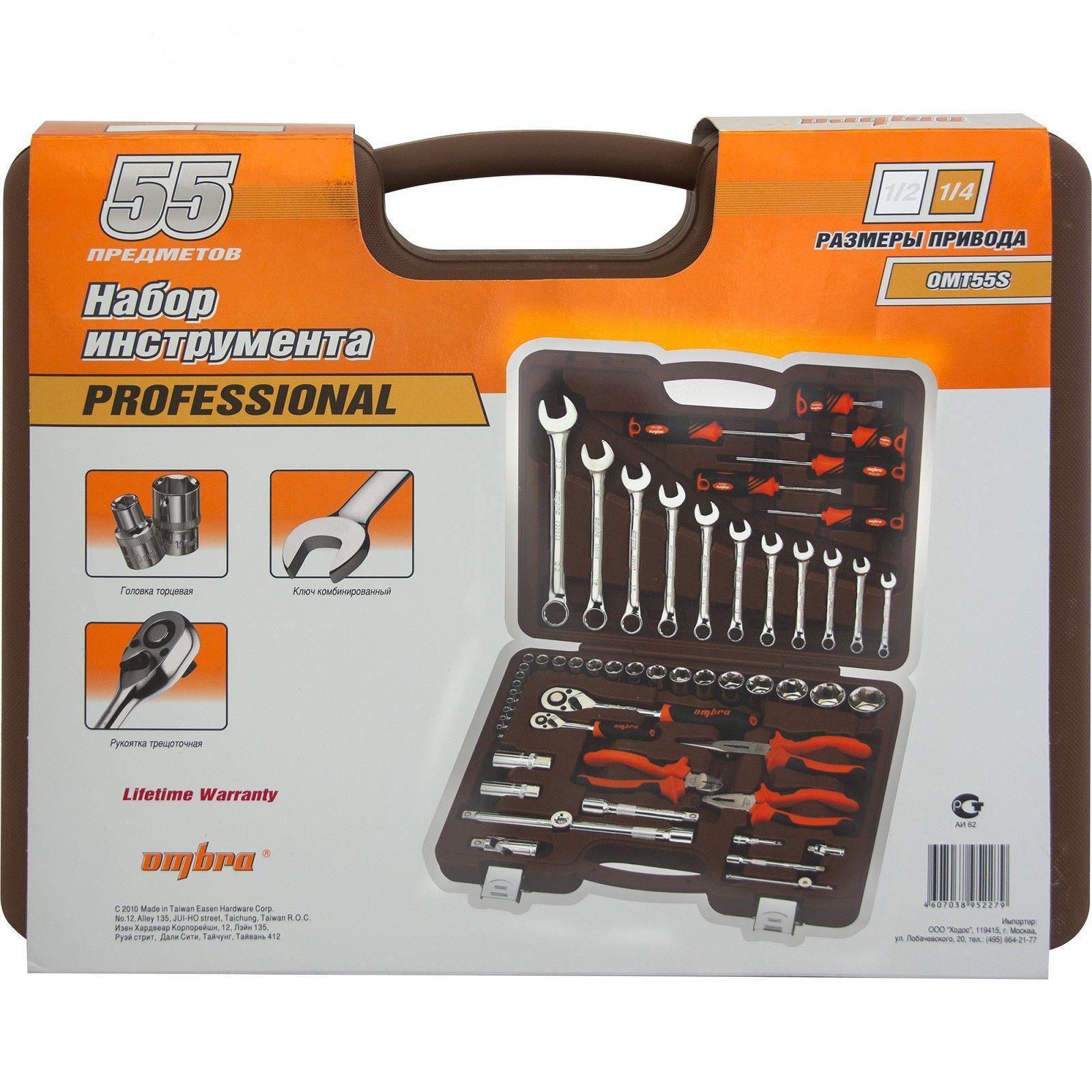 Набор инструмента Ombra OMT55S, 1/4", 1/2", головки 4-32 мм, 55 предметов