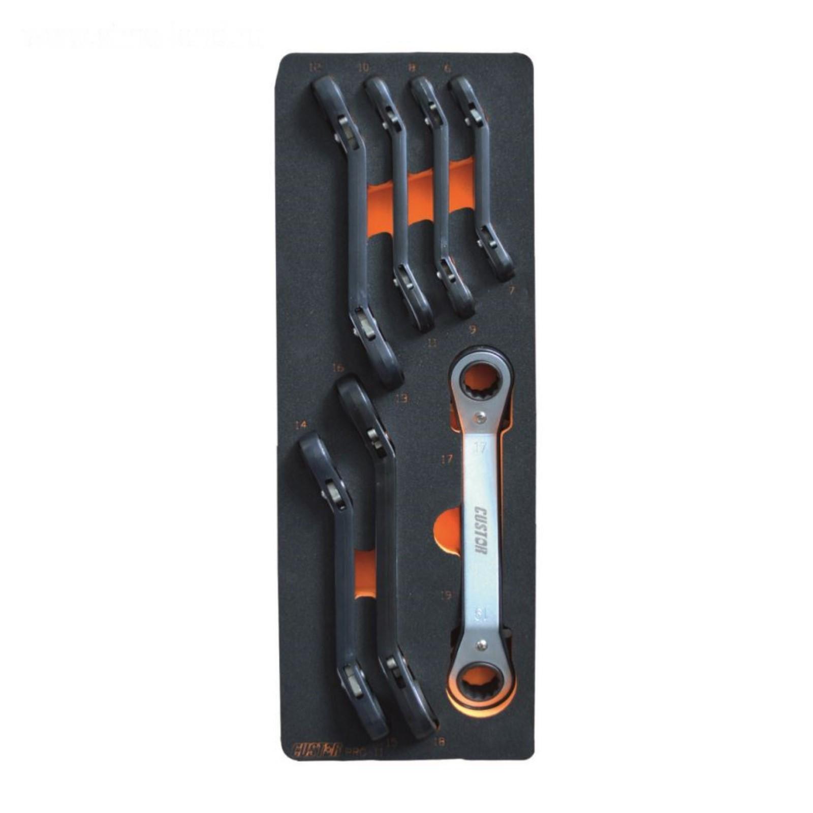Набор ключей двойных накидных CUSTOR PRO-11, трещотка, реверс, 25°, 7 предметов, ложемент