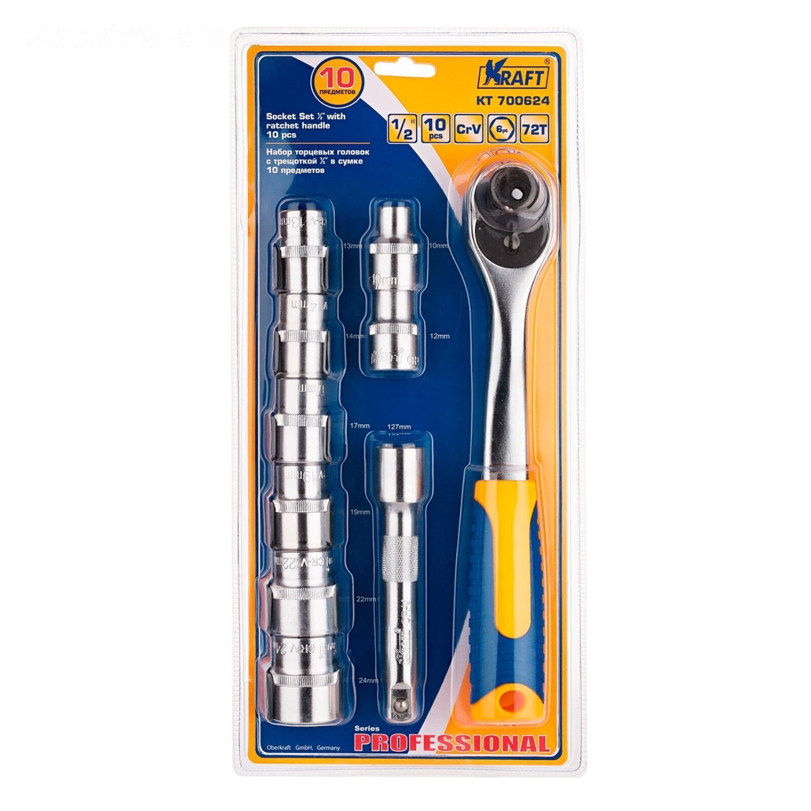 Набор головок торцевых и принадлежностей KRAFT KT700624, 1/2", 10-24 мм, 10 предметов