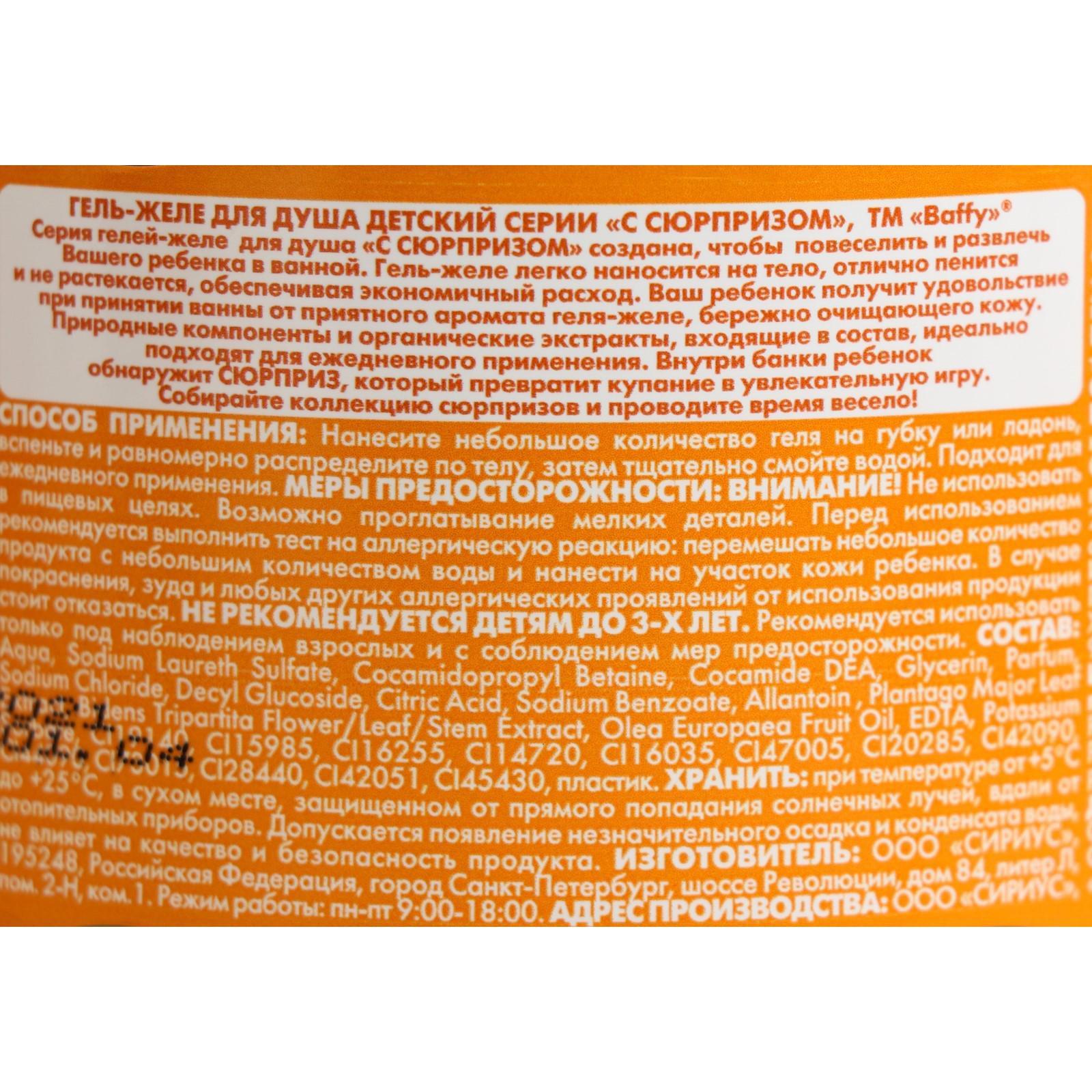 Уникальный гель-желе для душа с сюрпризом внутри повеселит не только ребёнка, но и Вас, превращая купание в увлекательную игру. Средство очень густой консистенции безумно нравится детям, и не имеет аналогов как в России, так и за рубежом. Бонусом будет игрушка в капсуле из наших коллекций, которые мы постоянно обновляем.