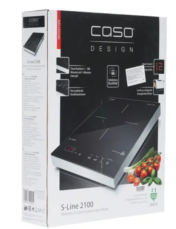 Плита компактная электрическая CASO S-Line 2100 выполнена в черном корпусе с покрытием из стеклокерамики, что способствует легкому уходу за прибором и обеспечивает ее привлекательный вид. Мощность устройства составляет 2.1 кВт. На поверхности используется всего одна варочная зона с поддержкой распознавания посуды. На ней можно использовать сковородки и кастрюли с диаметром дна 14-24 см. Для индукционной плиты подходит только посуда, поддерживающая индукционное дно. Сенсорные переключатели, а также цифровой дисплей используются для удобства управления функциями плиты CASO S-Line 2100. Устройство поддерживает 12 уровней мощности, поэтому вы получаете возможность выбирать для приготовления того или иного блюда оптимальный режим нагрева поверхности. При настройке таймера вам не потребуется отключать плиту: отключение произойдет автоматически. Легкость очистки от жира, эргономичность, а также устойчивость к царапинам делают плиту очень удобной для эксплуатации.
