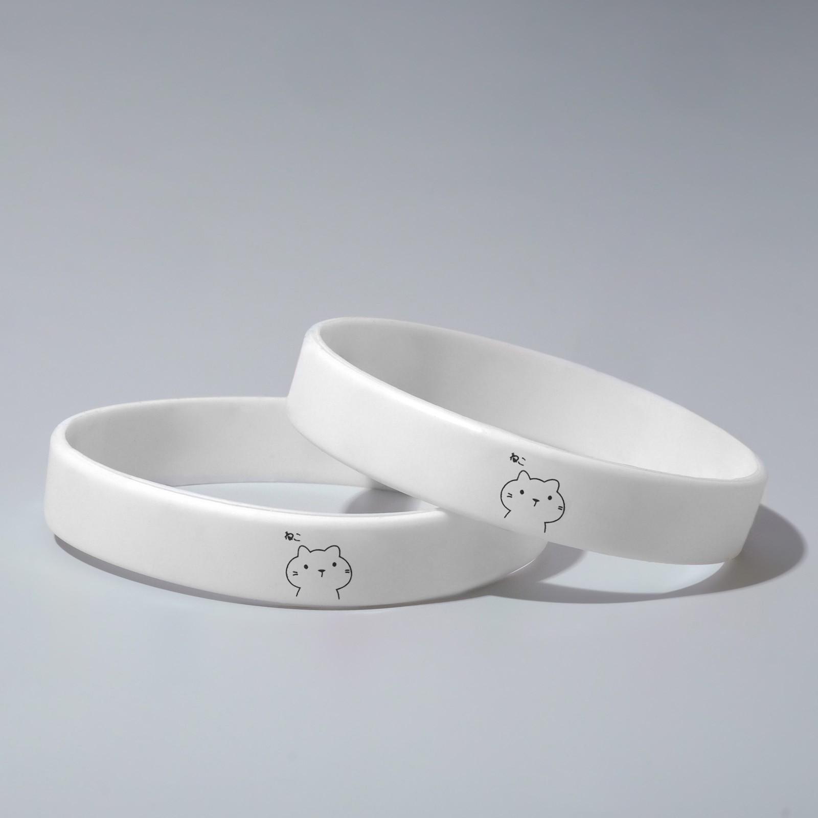 Силиконовый браслет "Котик", набор 2 шт, цвет белый