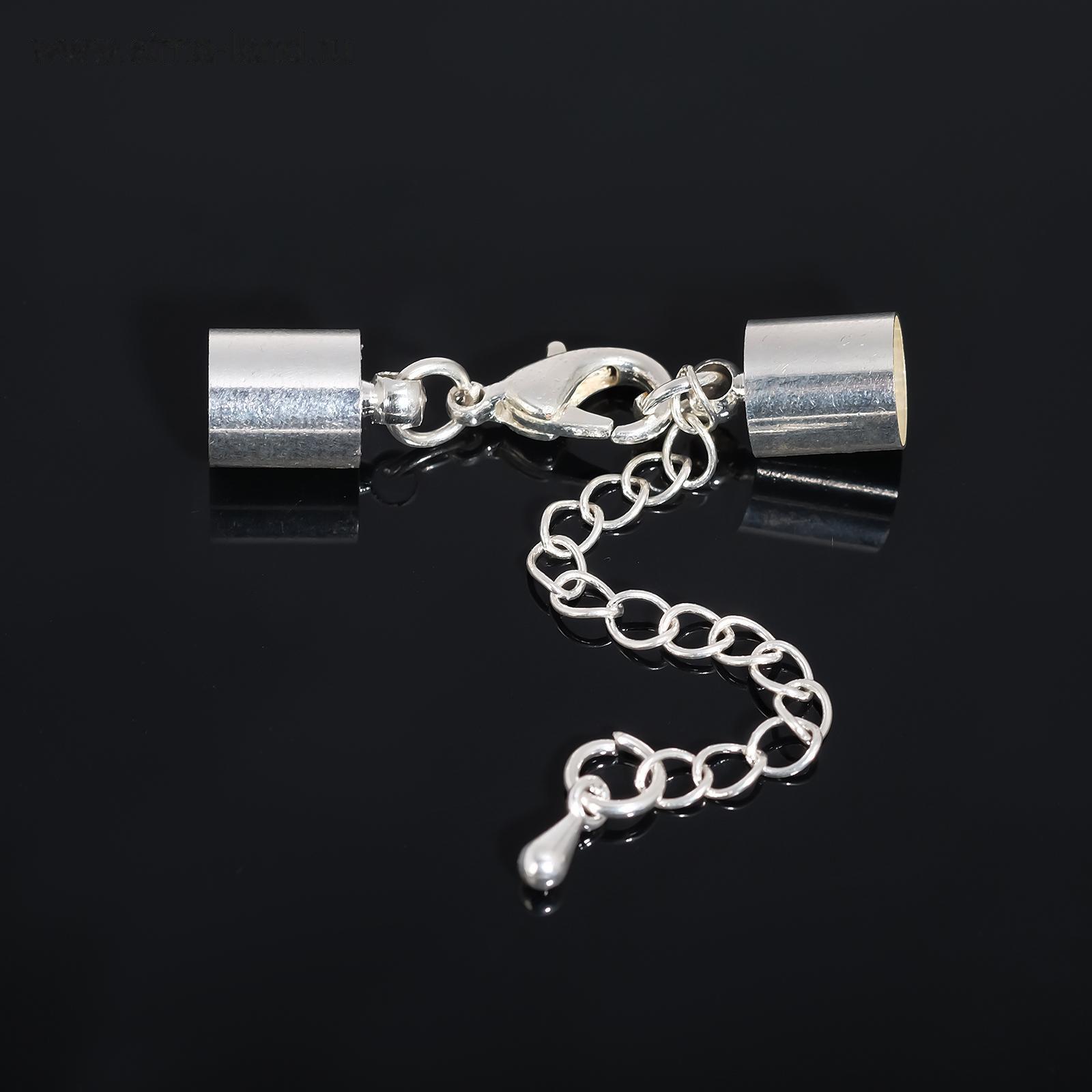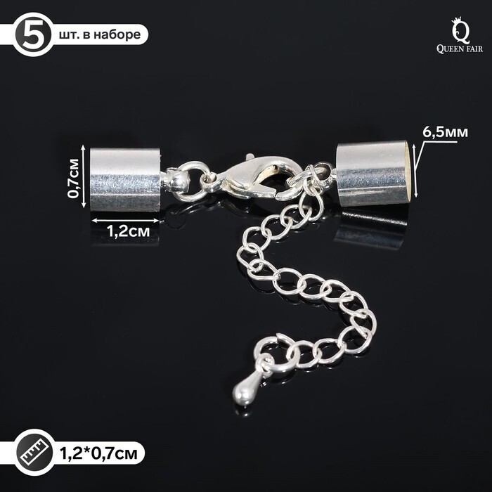 Замок-карабин (набор 5шт), 12 х 7мм с удл. и обж. кругл. концевиками 11 х 7мм (внутр. 6,5мм), цвет серебро