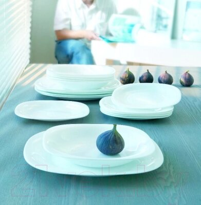 • В наборе тарелка столовая мелкая, тарелка закусочная (десертная), тарелка столовая глубокая