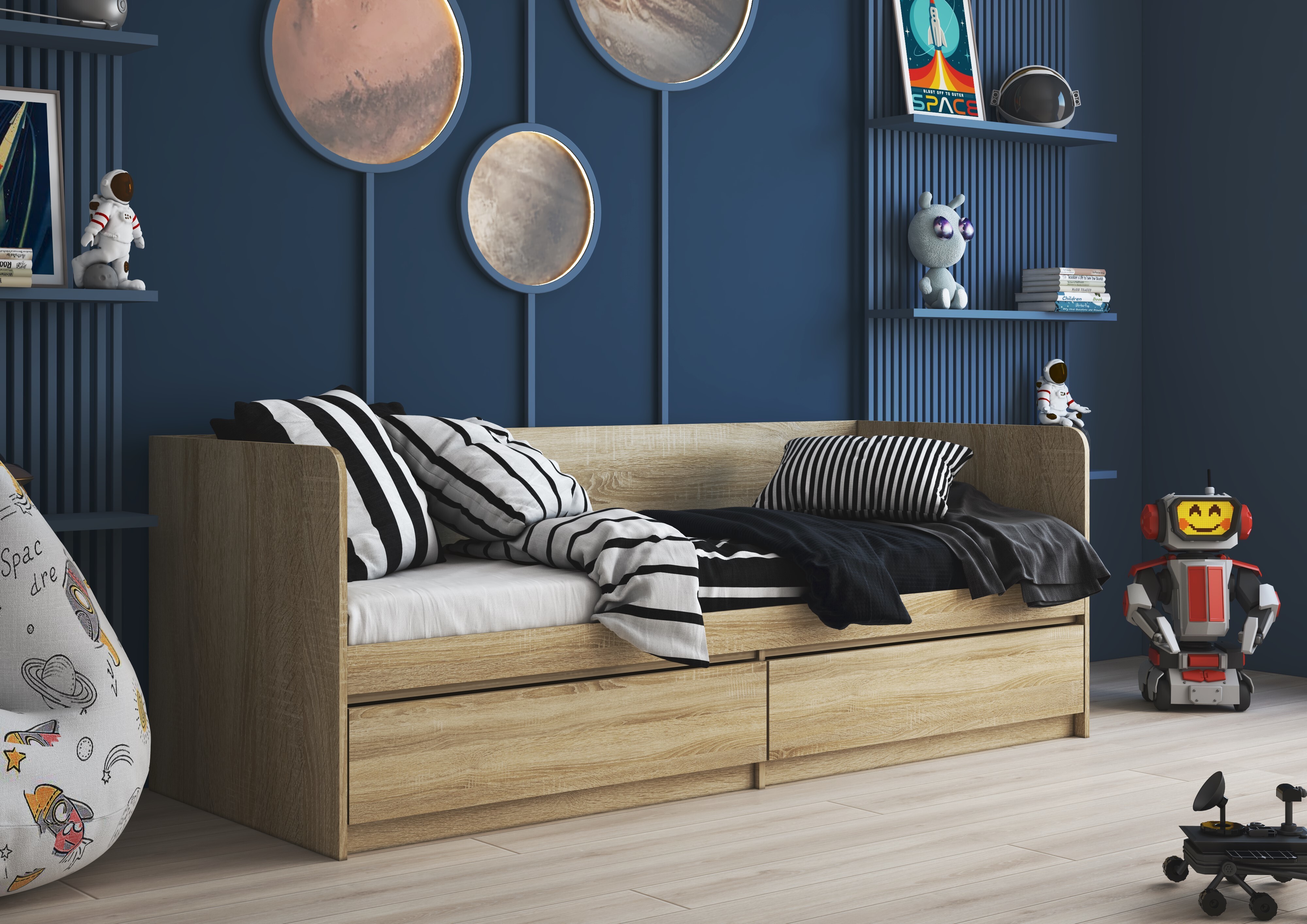 Цвет: Каркас/Фасад Сонома Спецификация: Размеры (ШхВхД), мм 840 х 700 х 2030 Спальное место, мм 800 х 2000 Материал ЛДСП Страна-производитель РФ