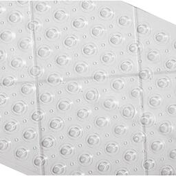 Коврик для ванной Ridder, изготовленный из ПВХ с защитой от плесени и грибка. Крепится к поверхности при помощи присосок и обладает антискользящим покрытием. За изделием легко ухаживать, достаточно сполоснуть его тёплой водой.