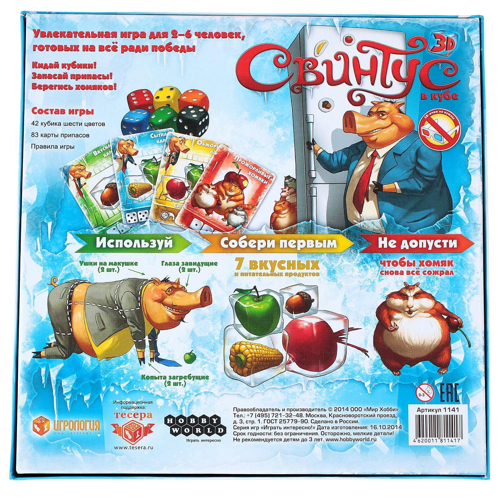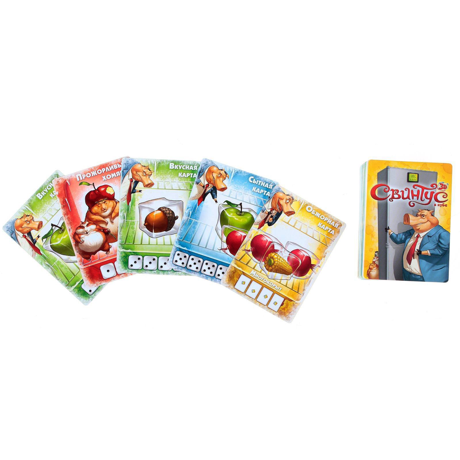 Свинтус – это забавная игра для 2-6 участников старше 6 лет. Запасайтесь едой, её много не бывает! Докажите, что вам нет равных в сборе провизии. Бросайте кубики и собирайте вкусные и питательные комбинации продуктов.