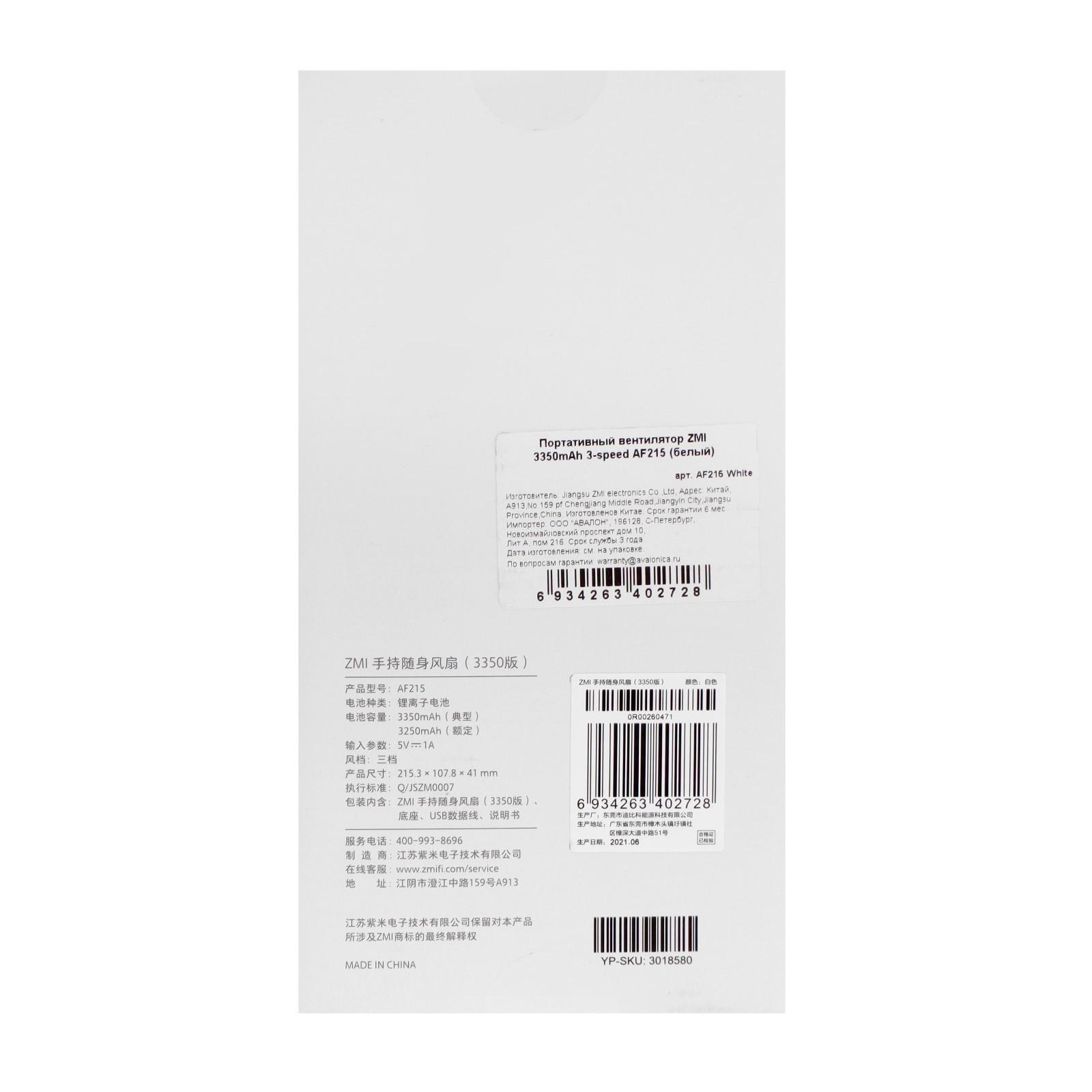 Портативный вентилятор Xiaomi ZMI AF215, 3 скорости, 3350 мАч, белый