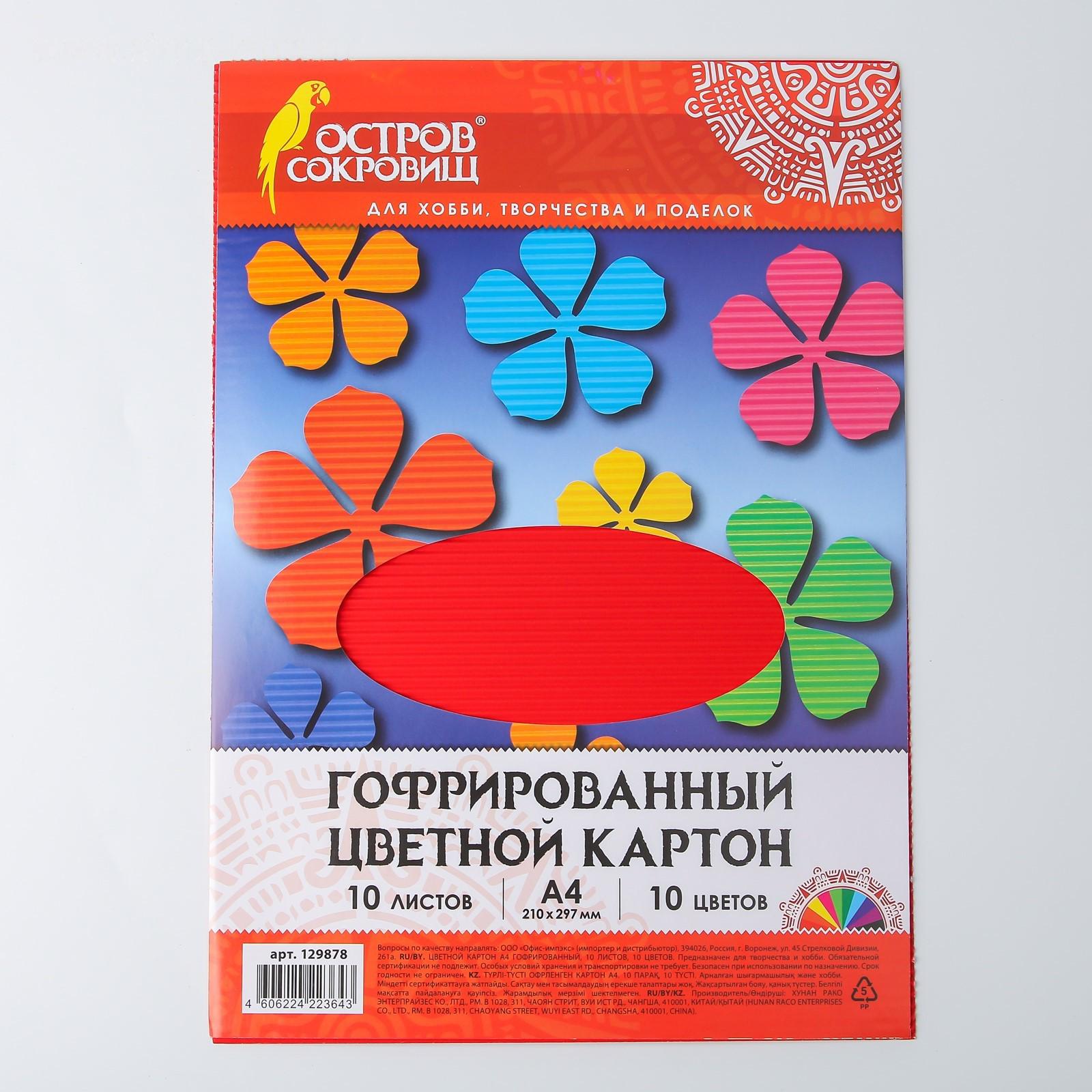 Набор цветного картона "Гофрированный" 10 листов 10 цветов, 180г/м2, 21х29,7 см