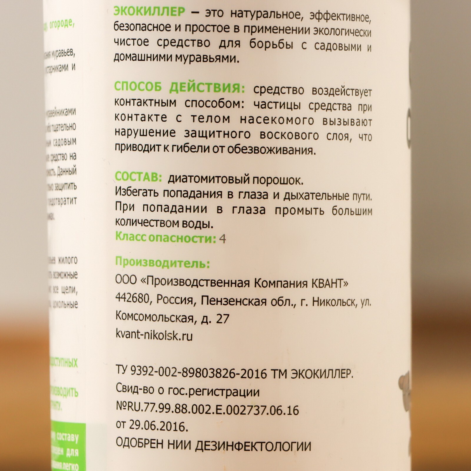 Состав: 100% диатомитовый порошок (кремний). Не имеет запаха. Не вызывает аллергических реакций и отравления.