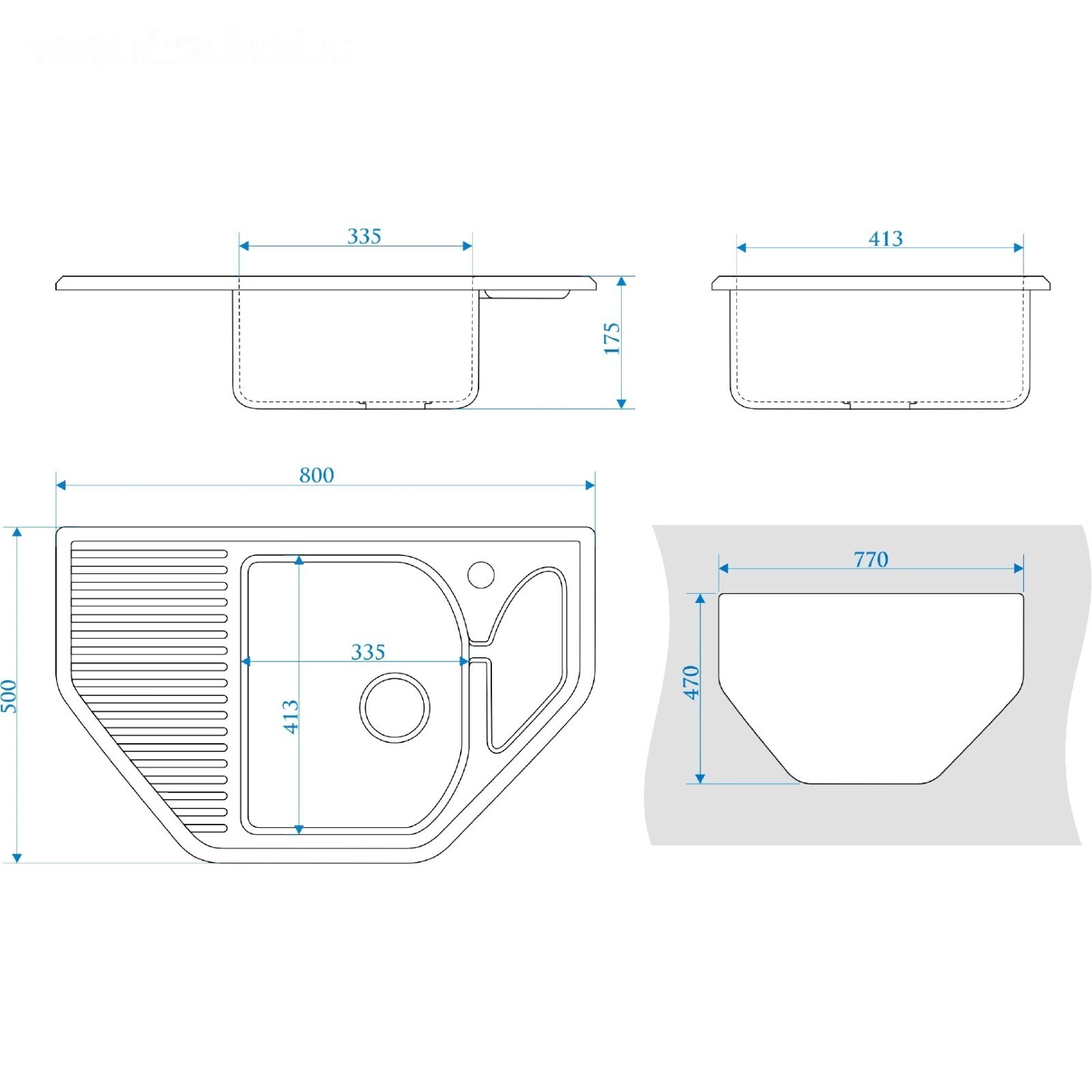 Мойка кухонная из камня ZETT lab. 22/Q2, 800x500x175 мм, матовая, врезная, бежевая
