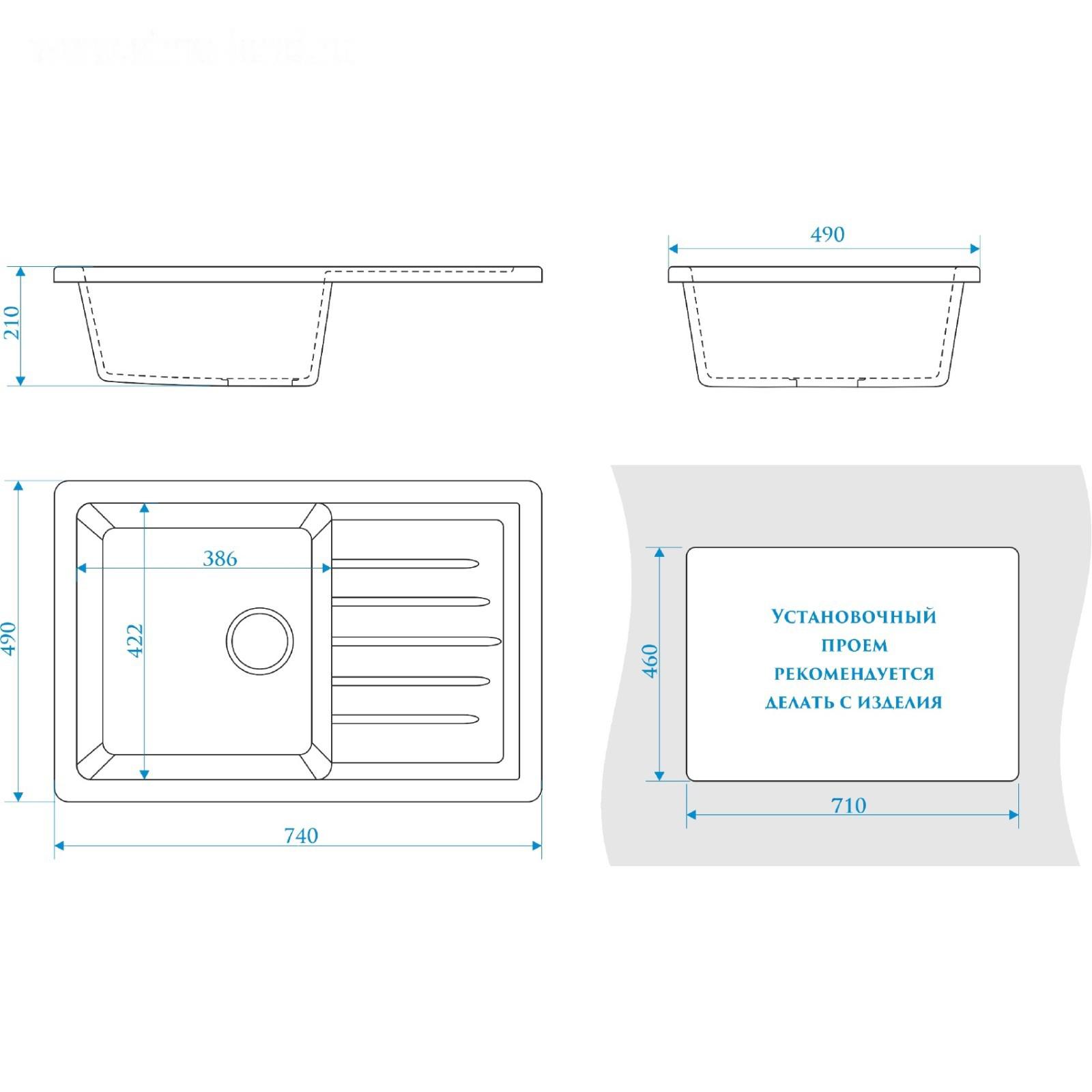 Мойка кухонная из камня ZETT lab. 16/Q2, 740x490x210 мм, матовая, врезная, бежевая