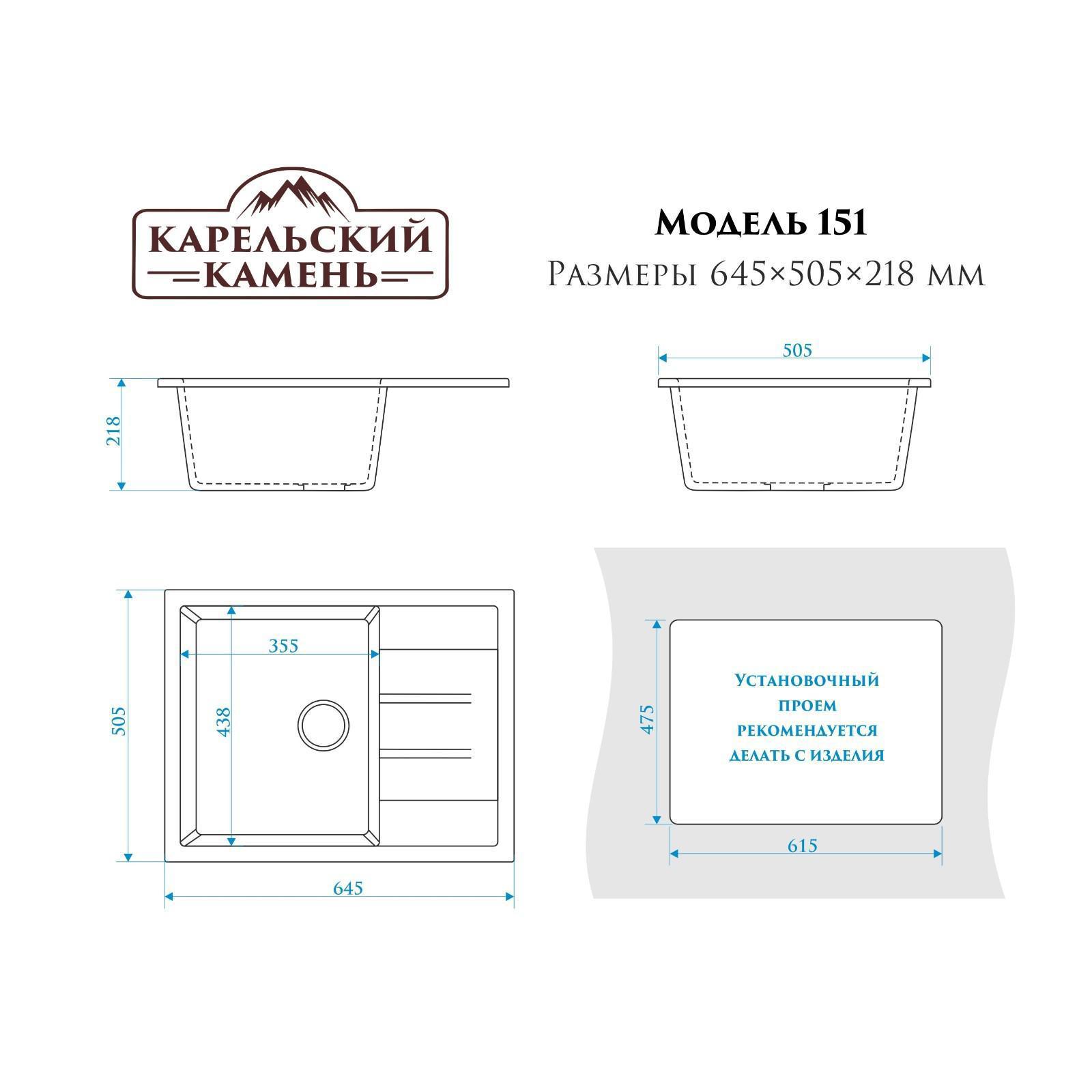 Мойка кухонная из камня ZETT lab. 151/Q10, 645х505х218 мм, матовая, врезная, светло-серая