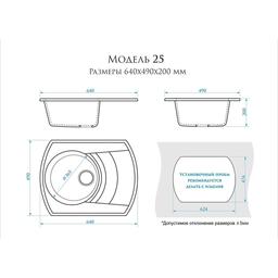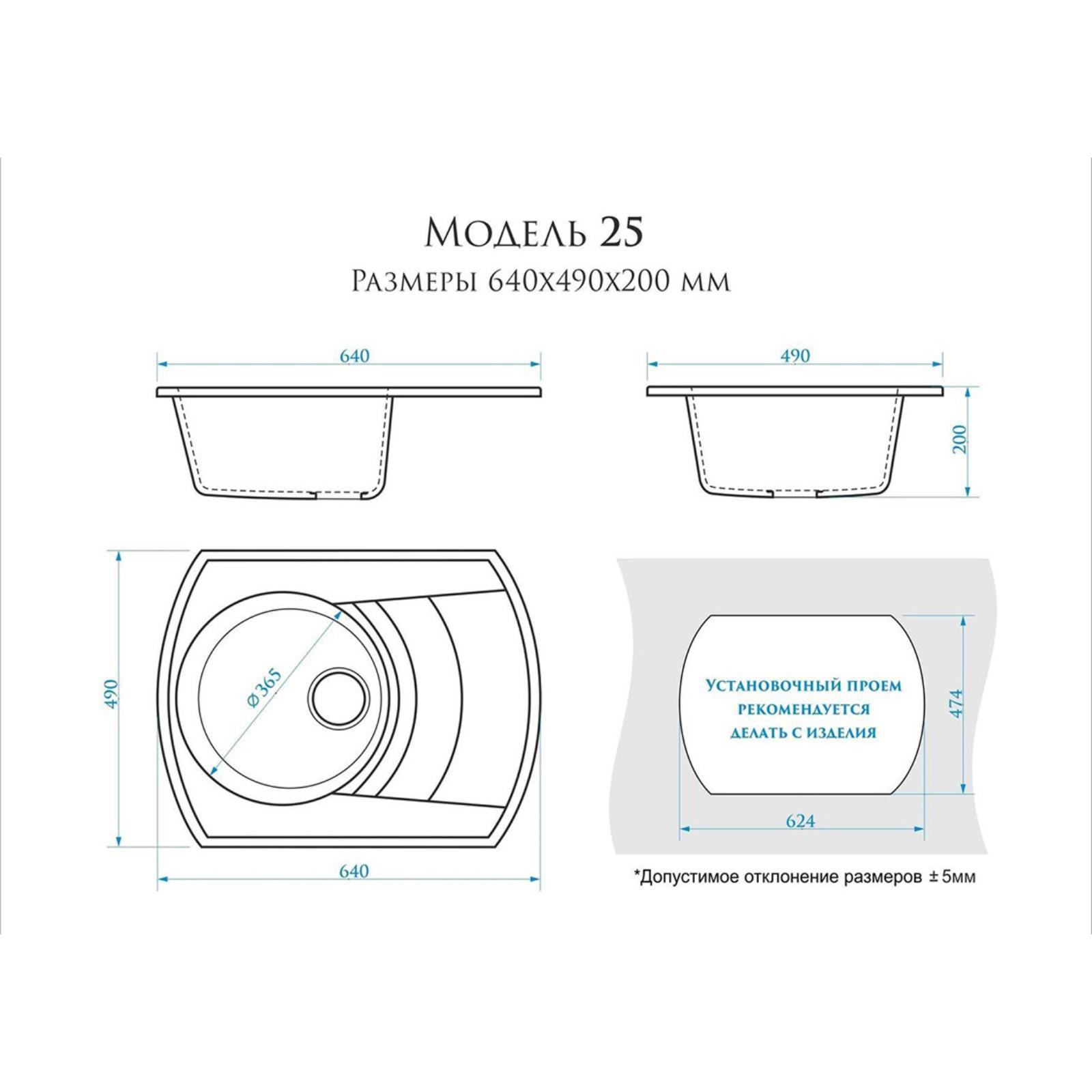 Мойка кухонная из камня ZETT lab. 25/Q8, 640х490х200 мм, матовая, врезная, темно-серая