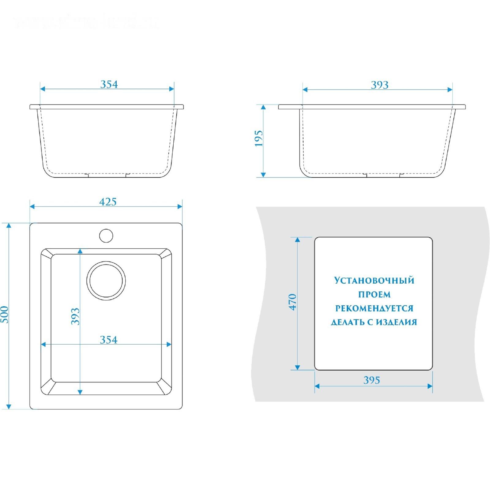 Мойка кухонная из камня ZETT lab. 8/Q5, 500x425x195 мм, матовая, врезная, песочная