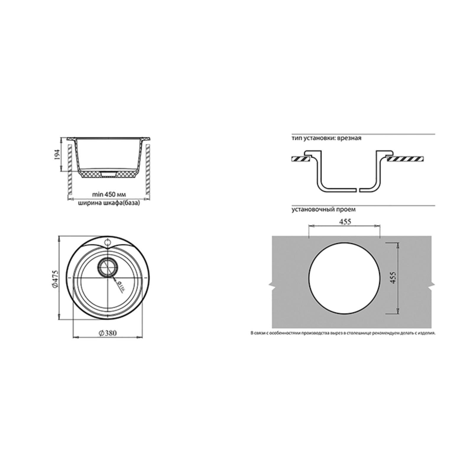 Мойка кухонная из камня GranFest GF-R480, d=475 мм, цвет иней