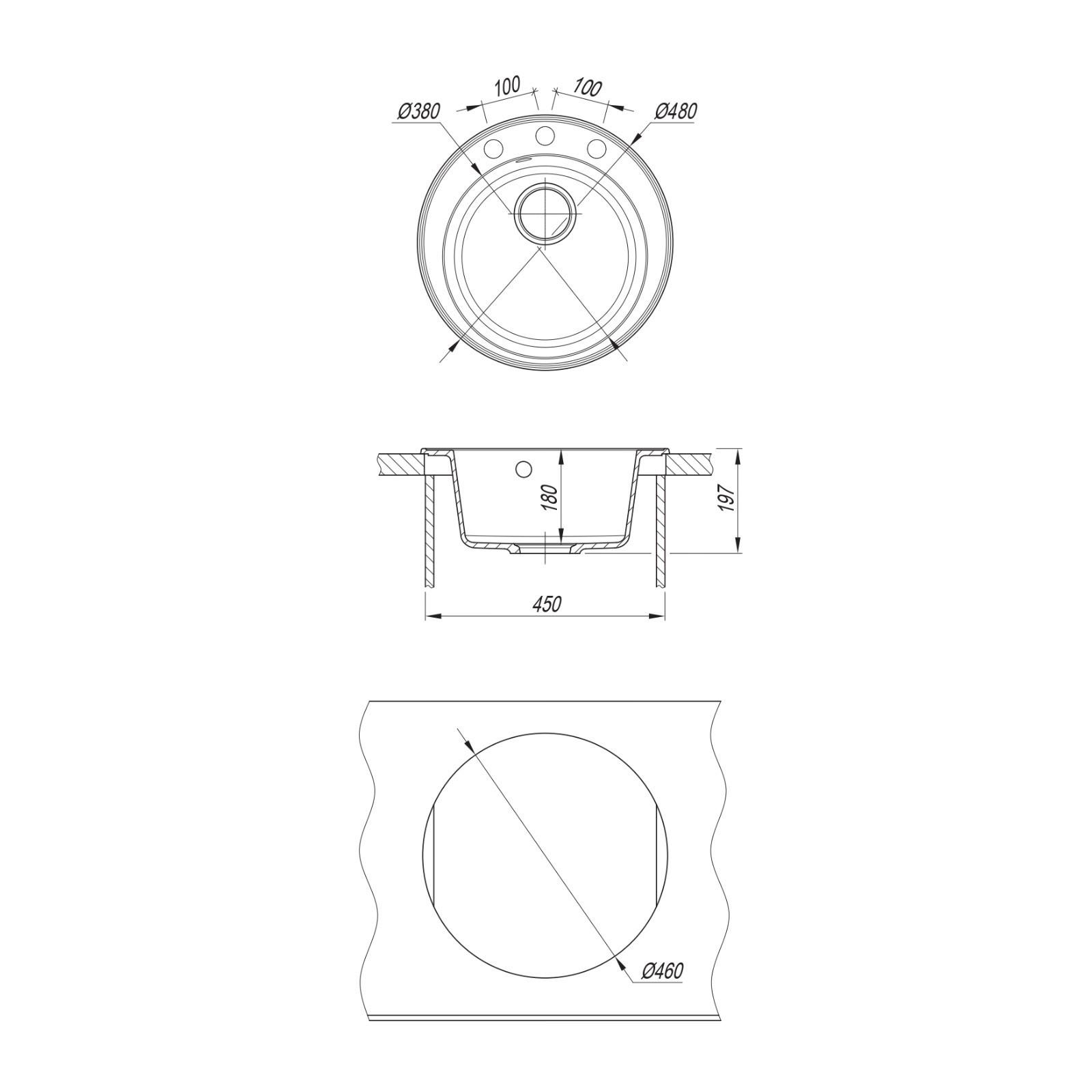 Мойка кухонная из камня Dr.Gans Smart «ПИОН-480» d=480 мм, h=180 мм, цвет белый
