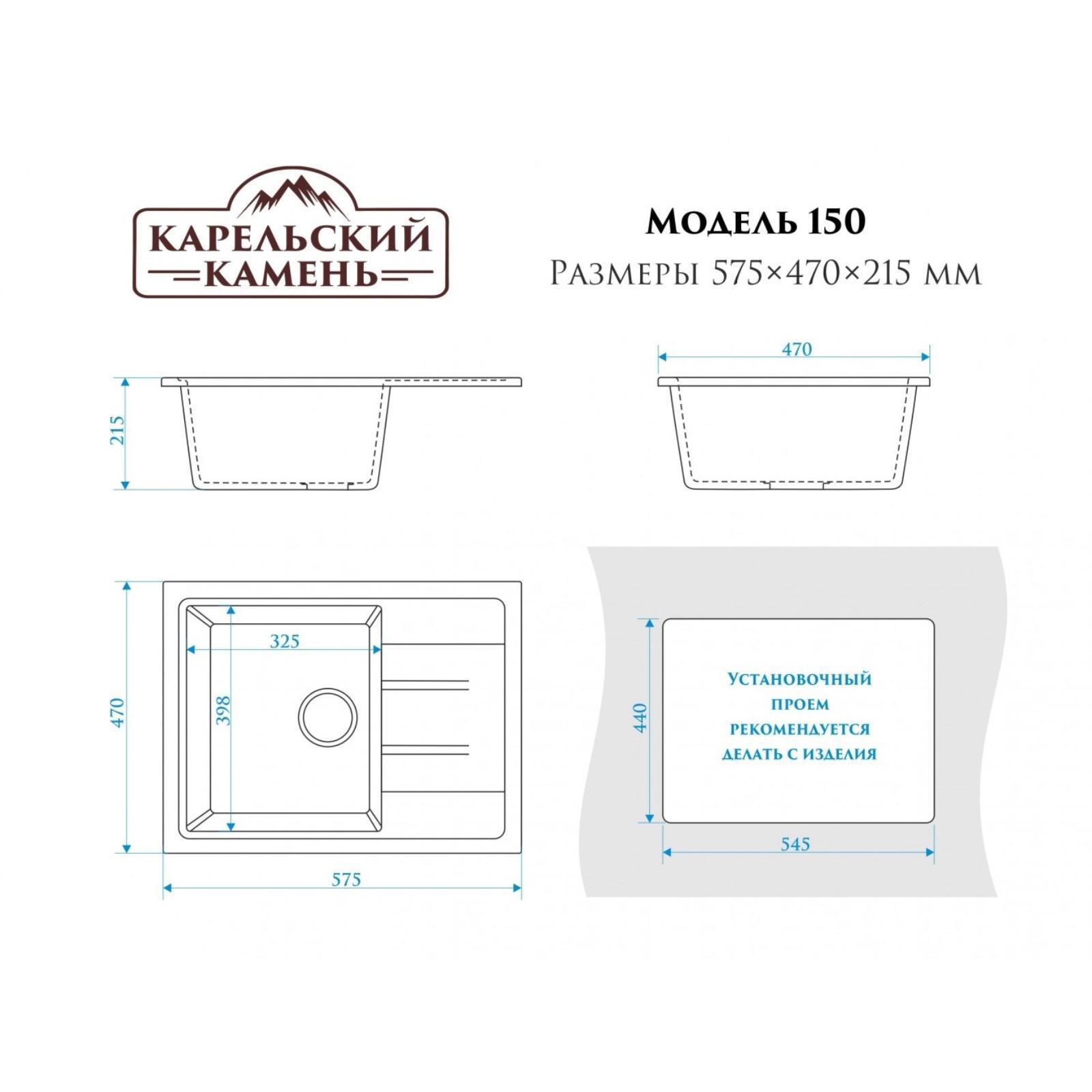 Мойка кухонная из камня ZETT lab. 150/Q5, 575x470x215 мм, матовая, врезная, песочная