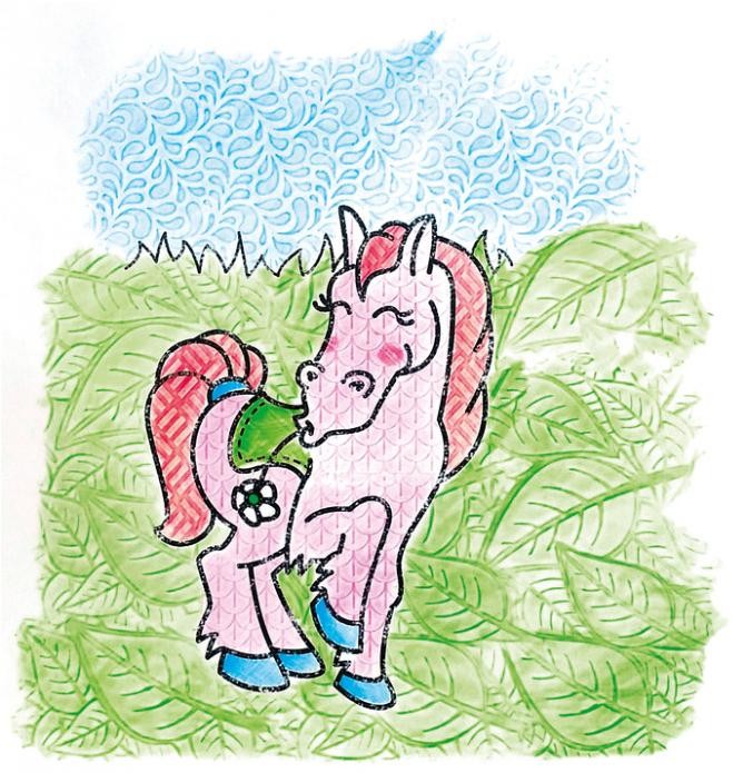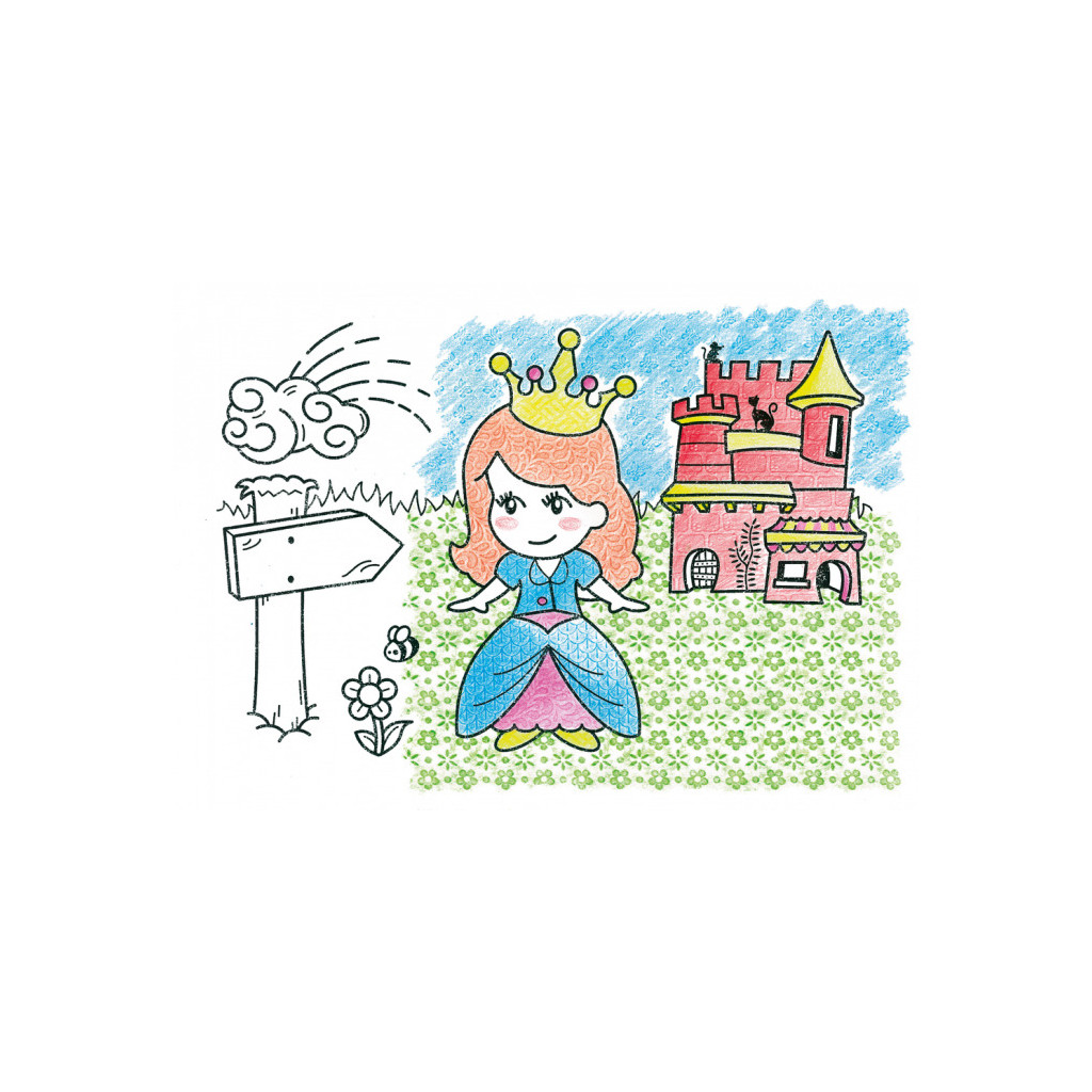 Створи свій сюжет з карток → поклади нагору аркуш паперу → потри крейдиком і малюнок проявиться → розфарбуй картинку підкладаючи різні орнаменти. Все дуже просто!