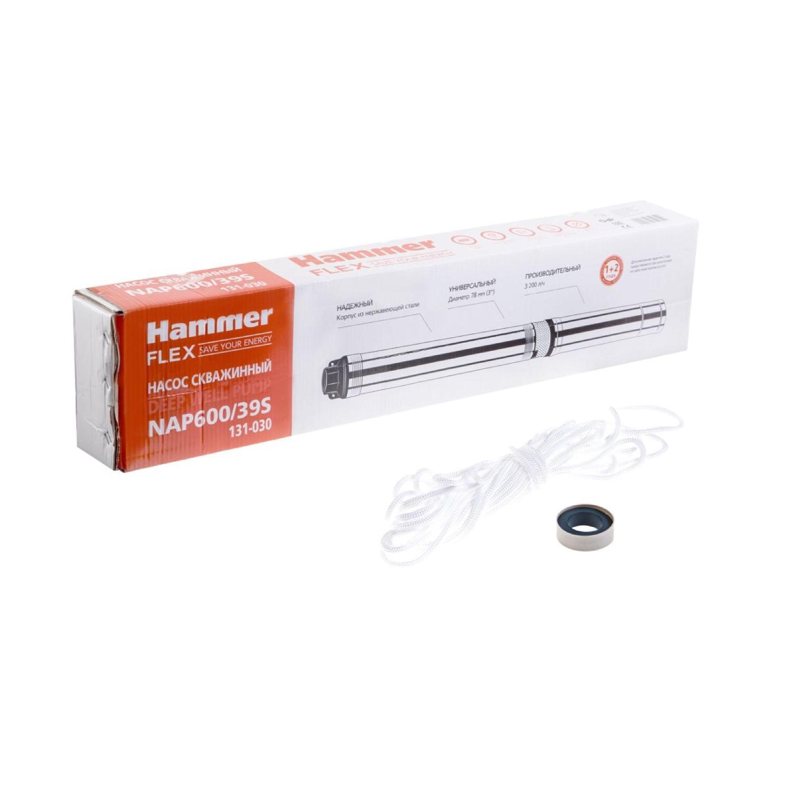 Насос скважинный Hammer NAP600/39S, центробежный, 600 Вт, 53 л/мин, напор 39 м, кабель 15 м