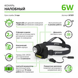 Налобный светодиодный фонарь Gauss аккумуляторный ...