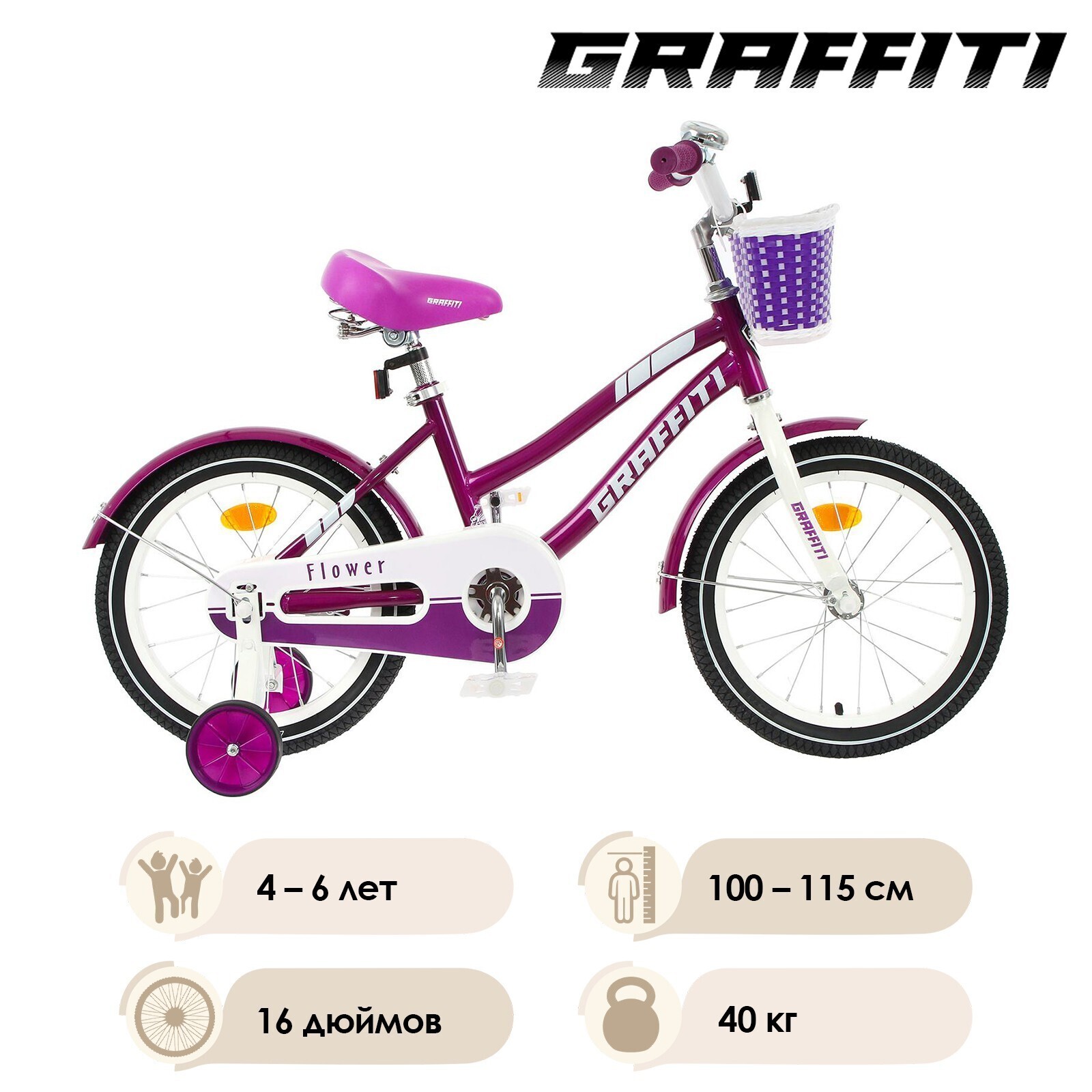 Велосипед 16" Graffiti Flower, цвет сиреневый/белый
