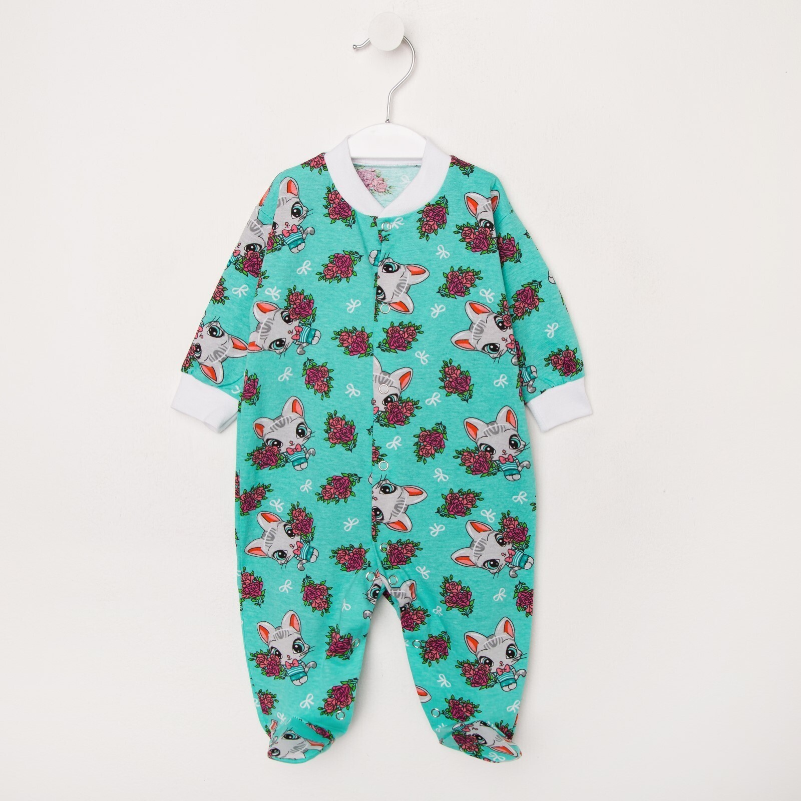 Комбинезон детский, цвет мята/кошечки, рост 56 см
