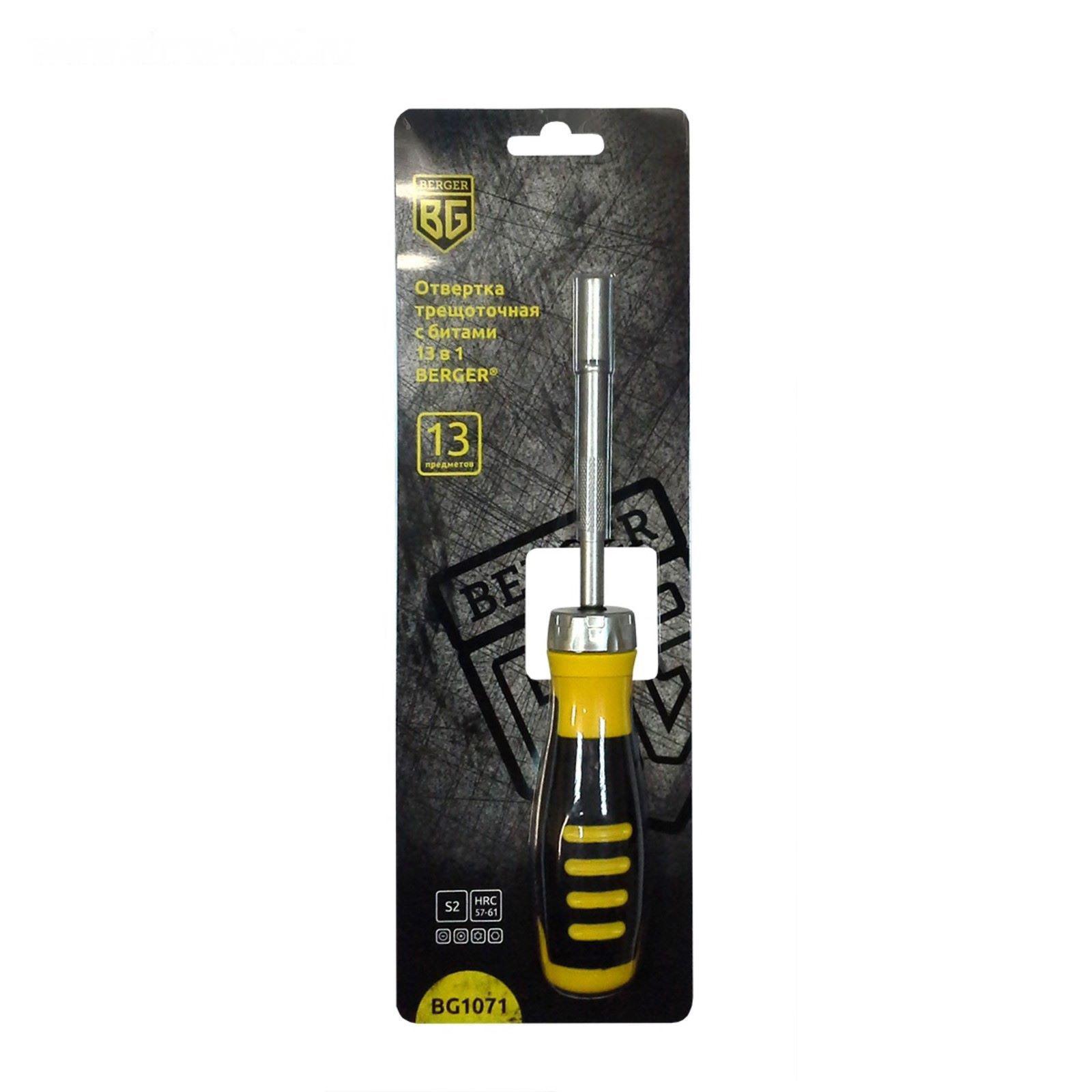 Набор 13 в 1 трещоточная отвёртка с битами BERGER, 13 предметов