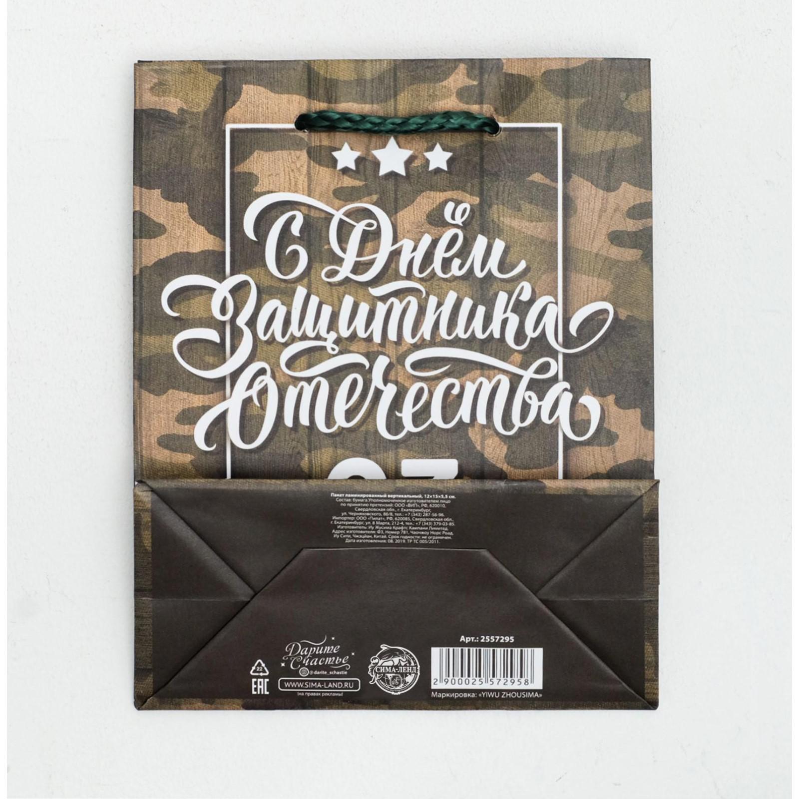 Пакет ламинированный вертикальный «С Днём Защитника Отечества, 23 февраля», S 12 × 15 × 5,5 см