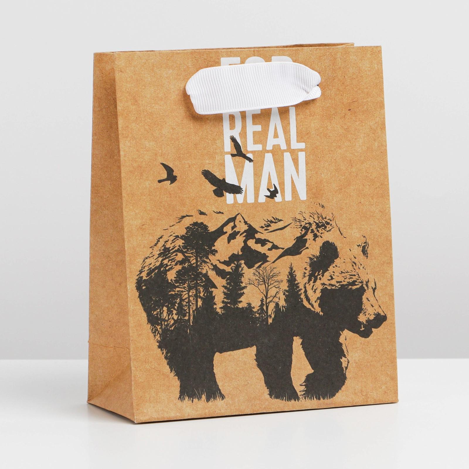 Пакет крафтовый вертикальный «Медведь», S 12 × 15 × 5.5 см