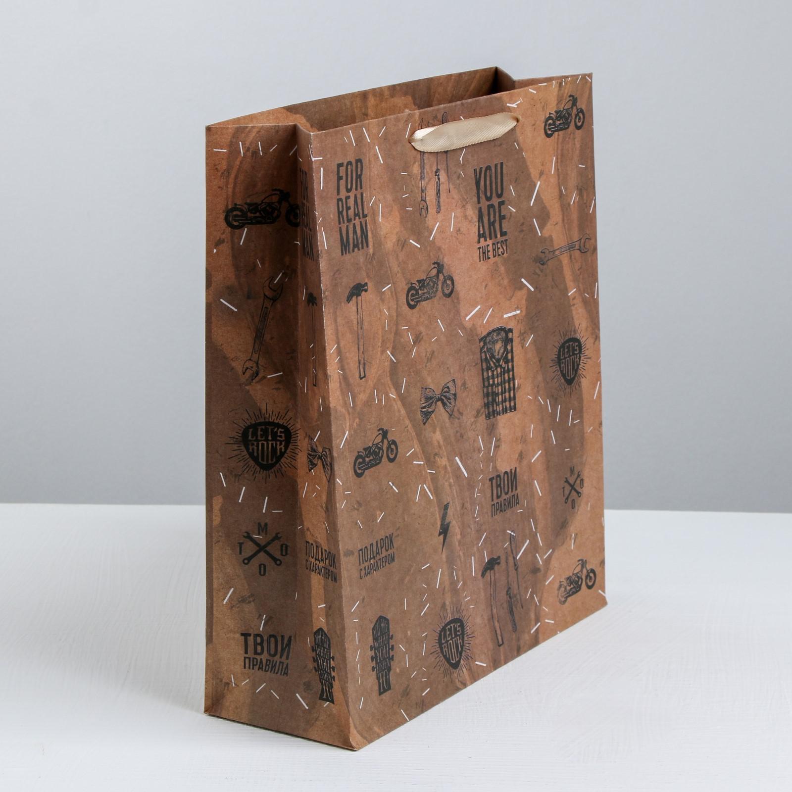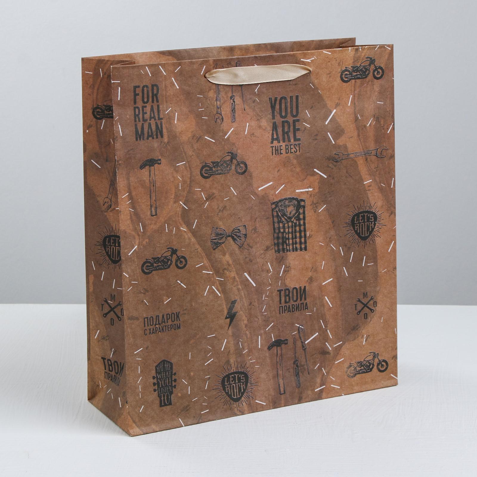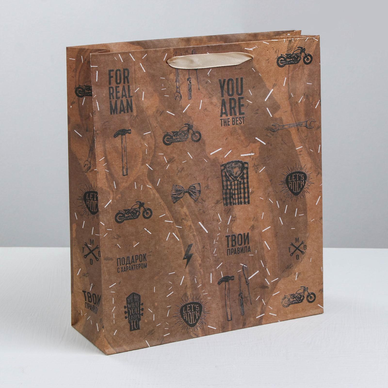 Пакет крафтовый вертикальный «For real man», MS 18 × 23 × 8 см