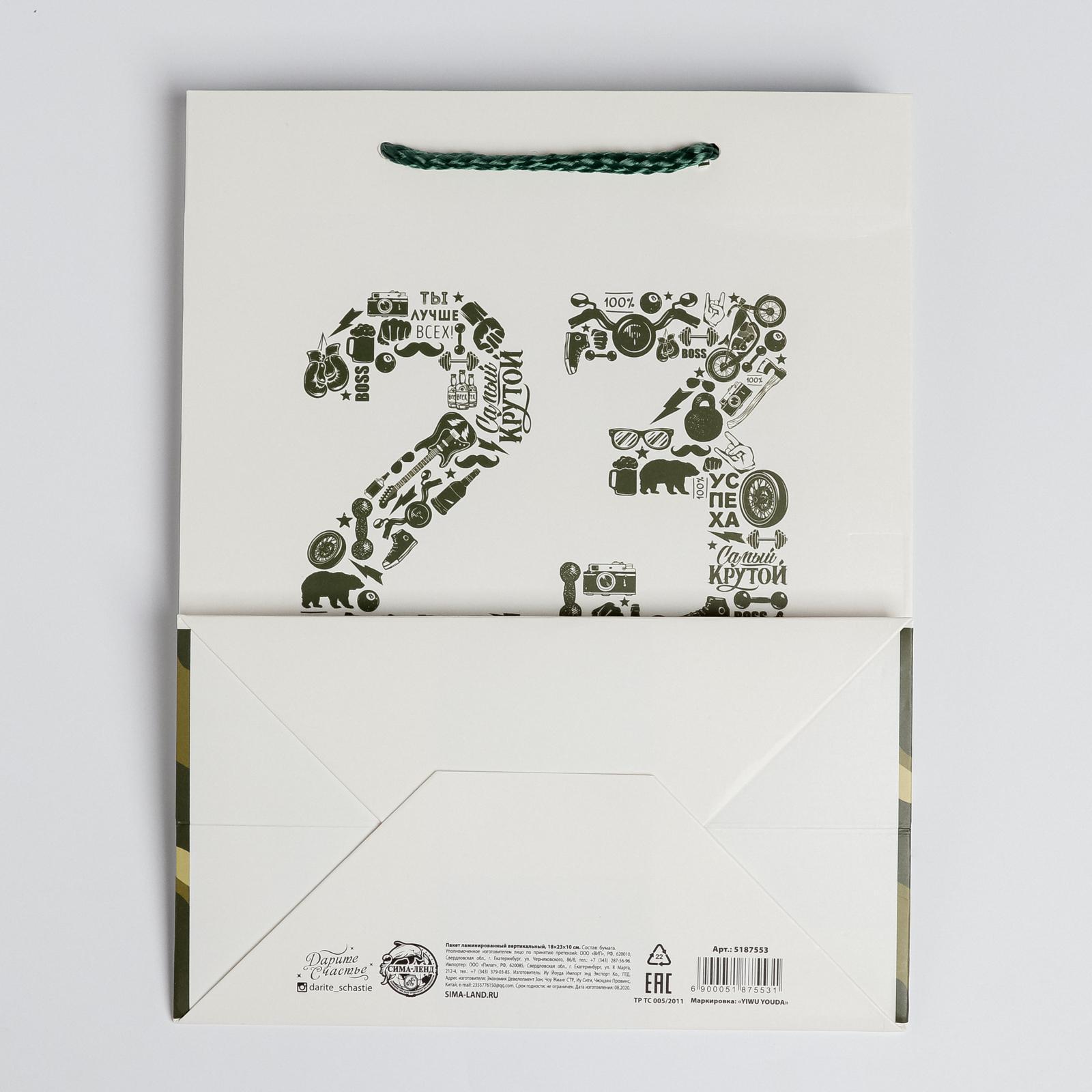Пакет ламинированный вертикальный «23 февраля», MS 18 × 23 × 10 см