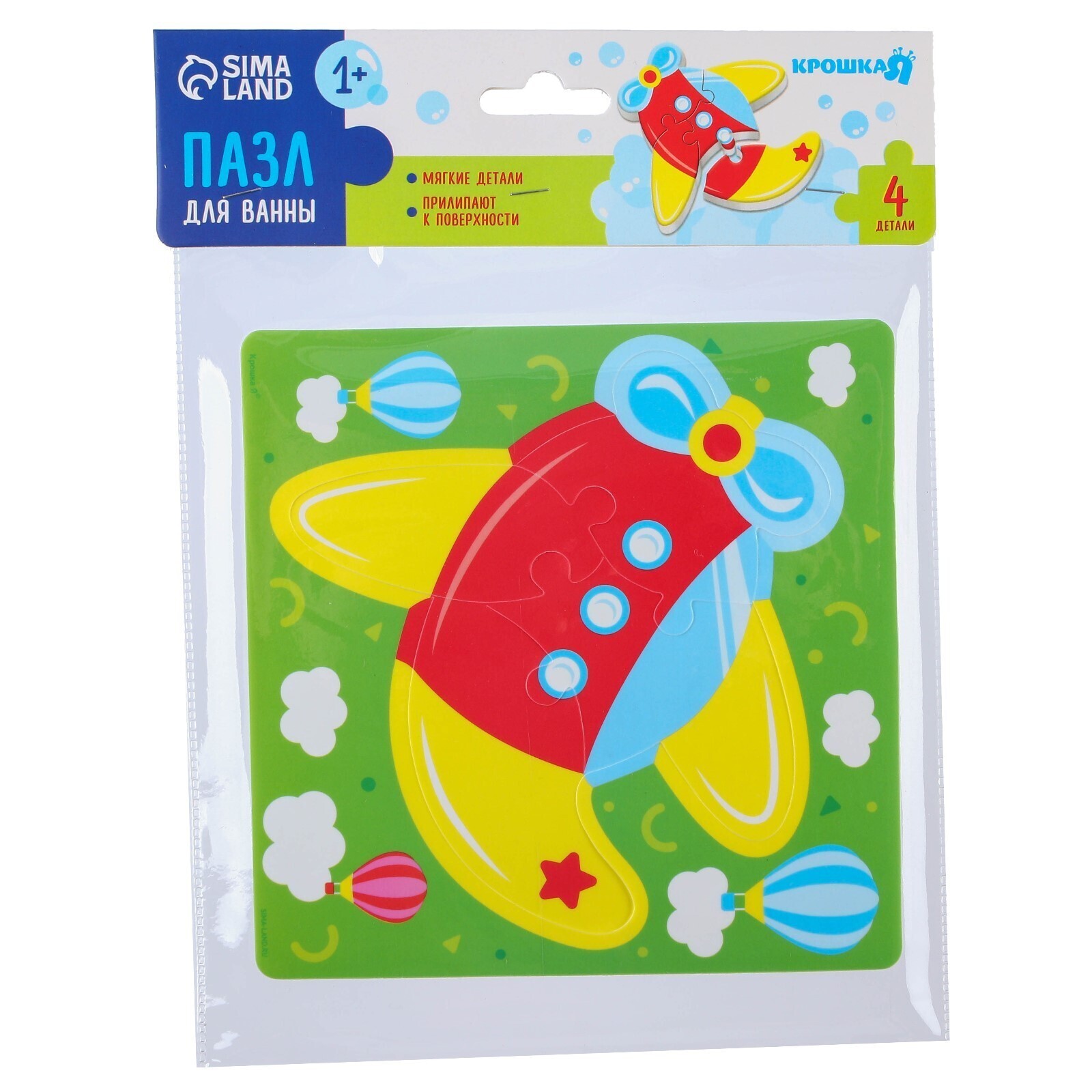 Пазл - игрушка для ванны (головоломка) «Самолет», 4 детали, EVA