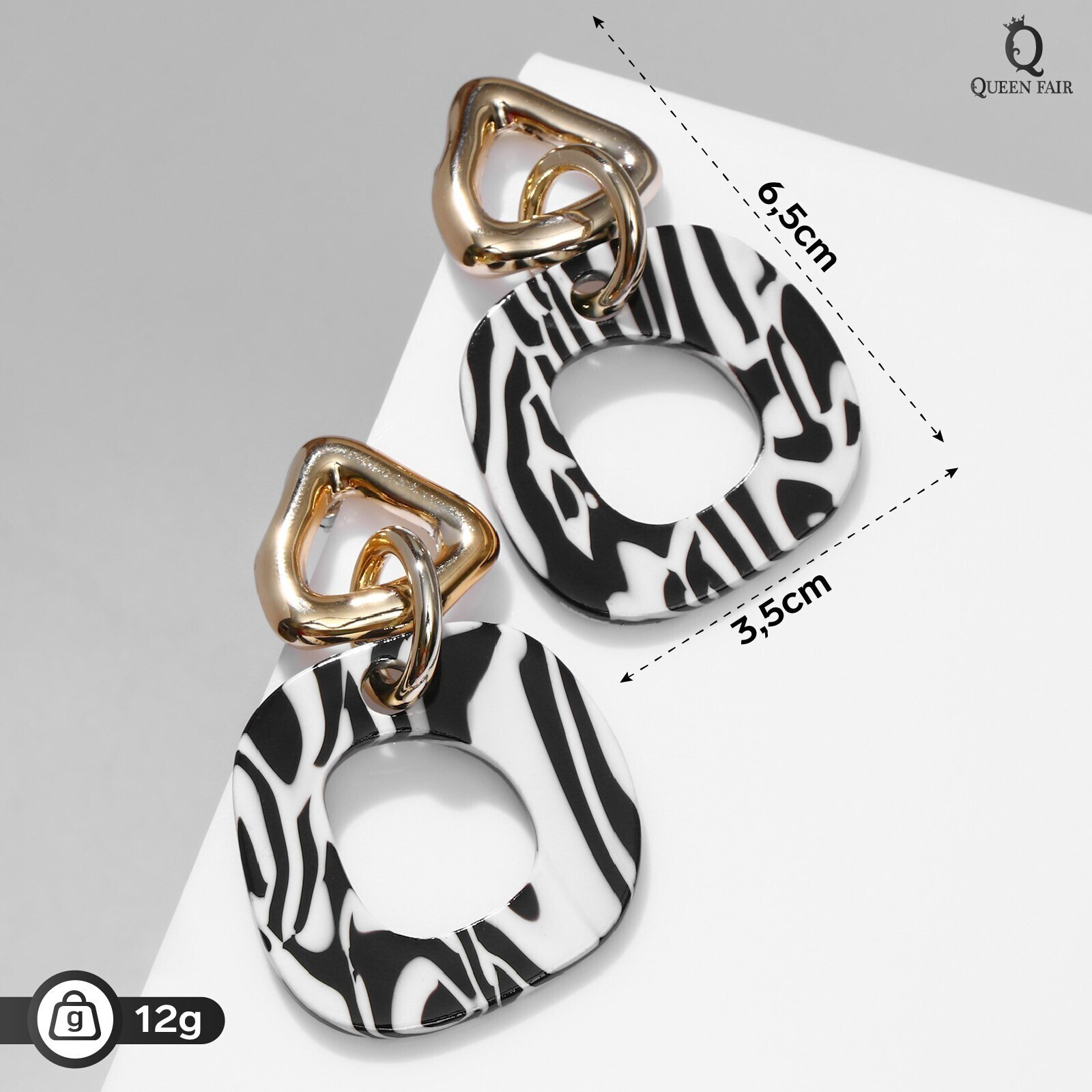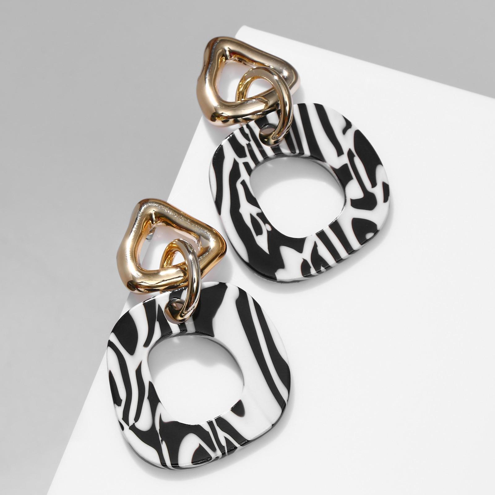 Серьги акрил "Зебра" цепи, цвет серо-чёрный в золоте
