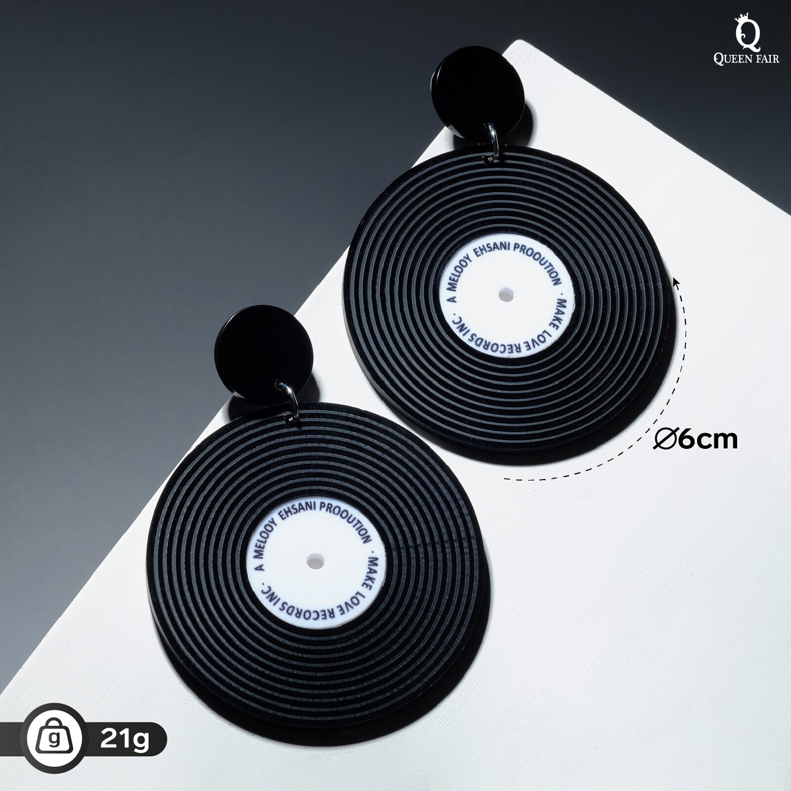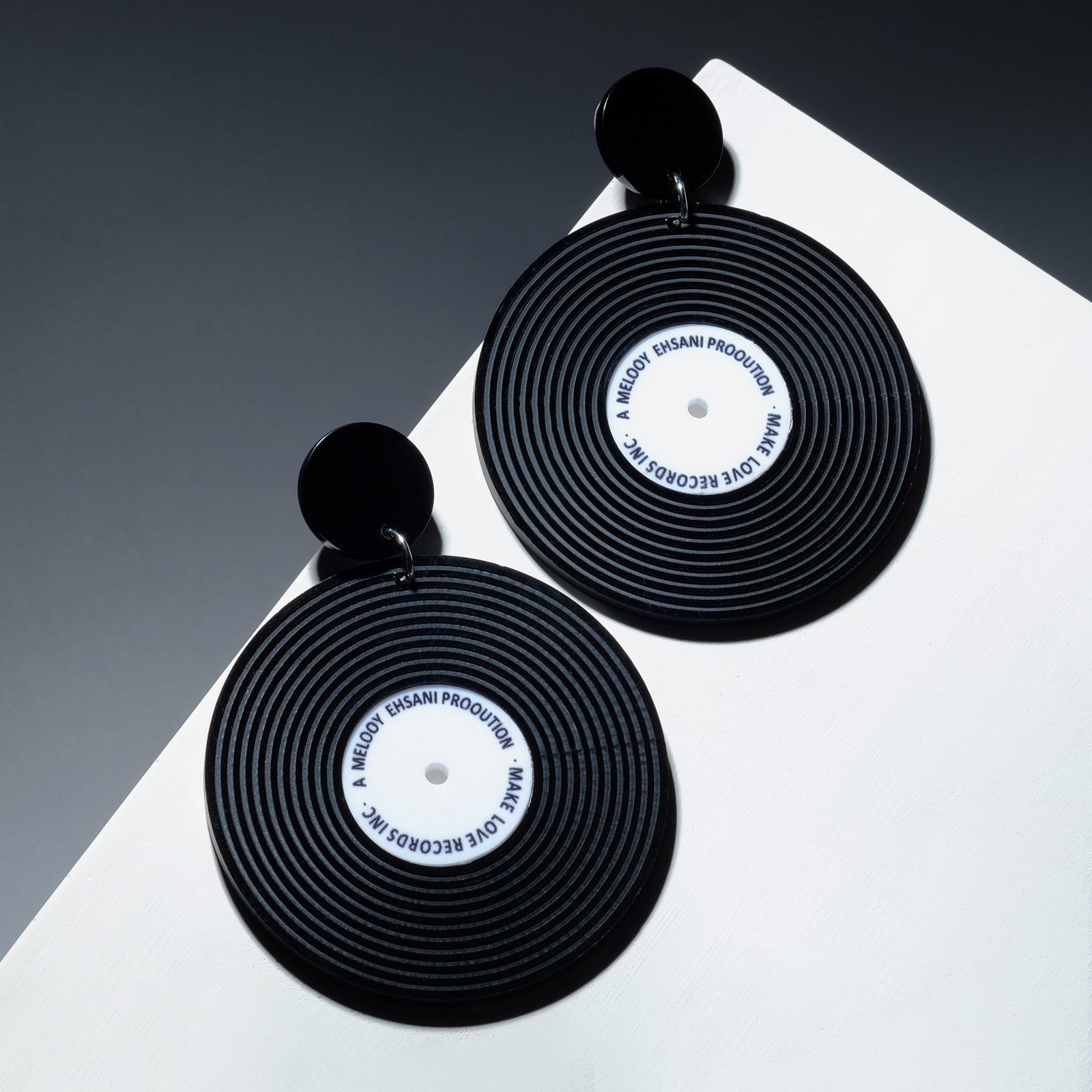 Серьги акрил "Винил" пластинки, цвет чёрно-белый