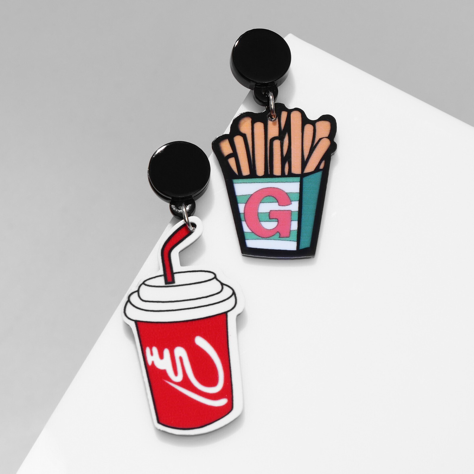 Серьги акрил "Еда" фаст-фуд, цветные в серебре