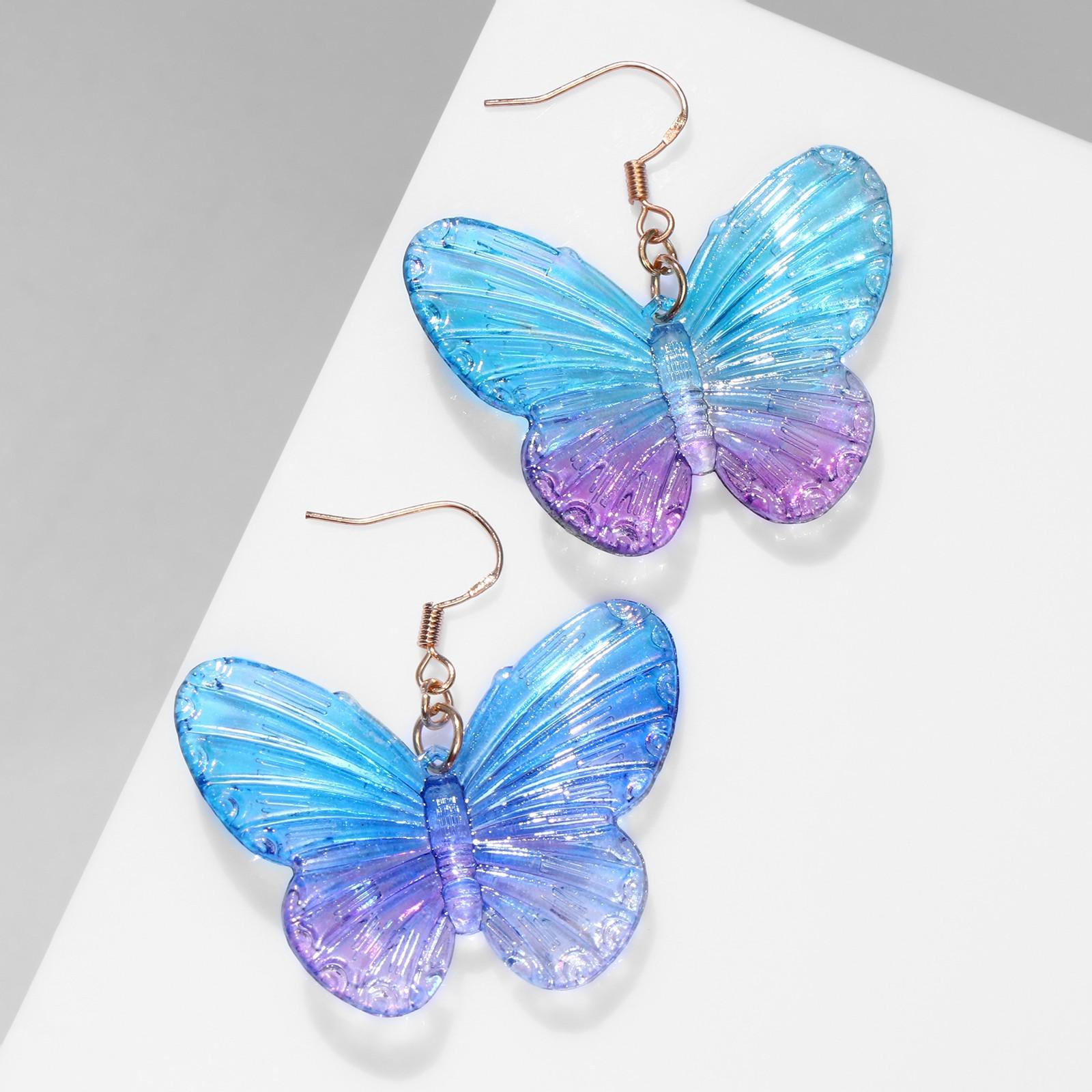 Серьги акрил "Бабочка" весенняя, цвет фиолетово-голубой в золоте