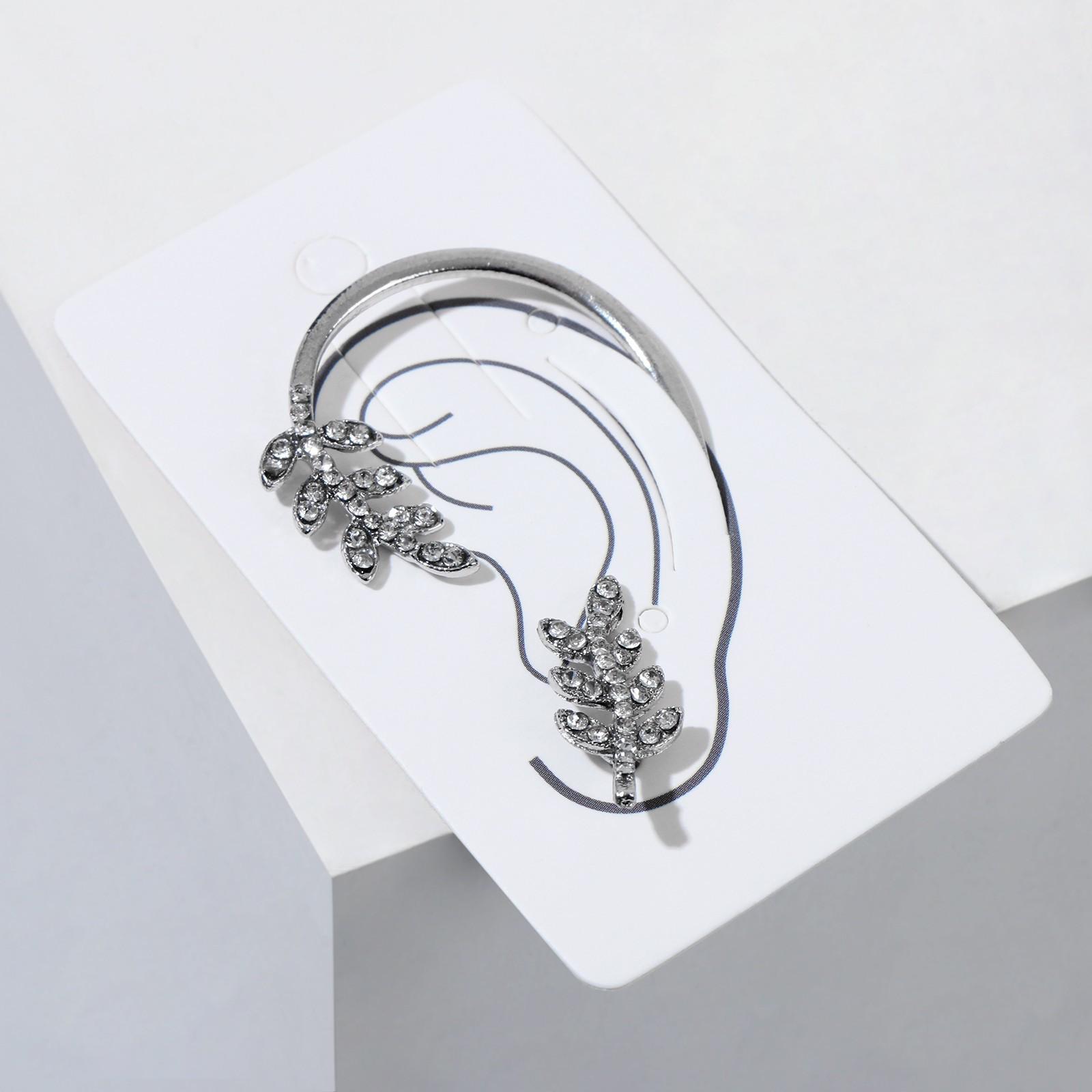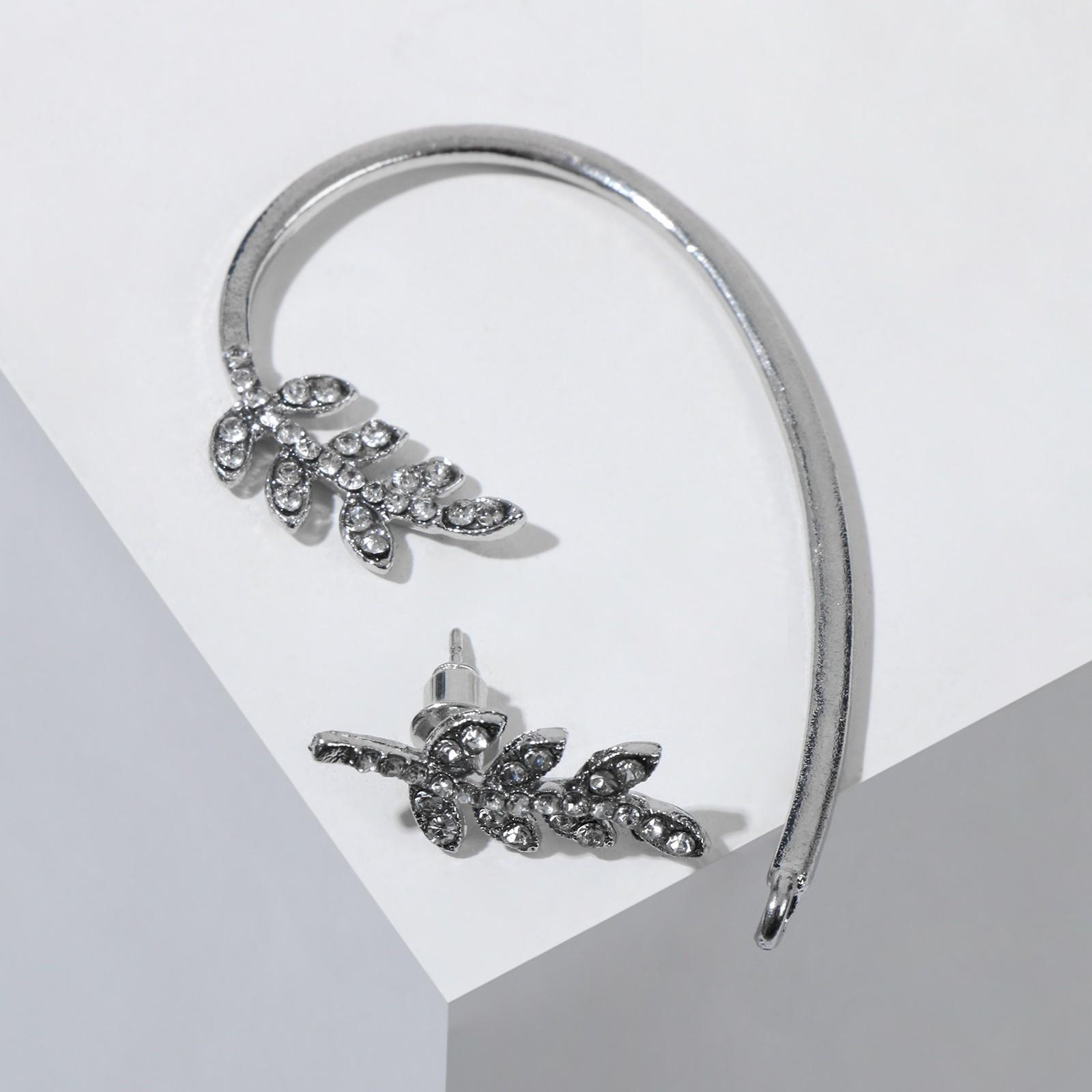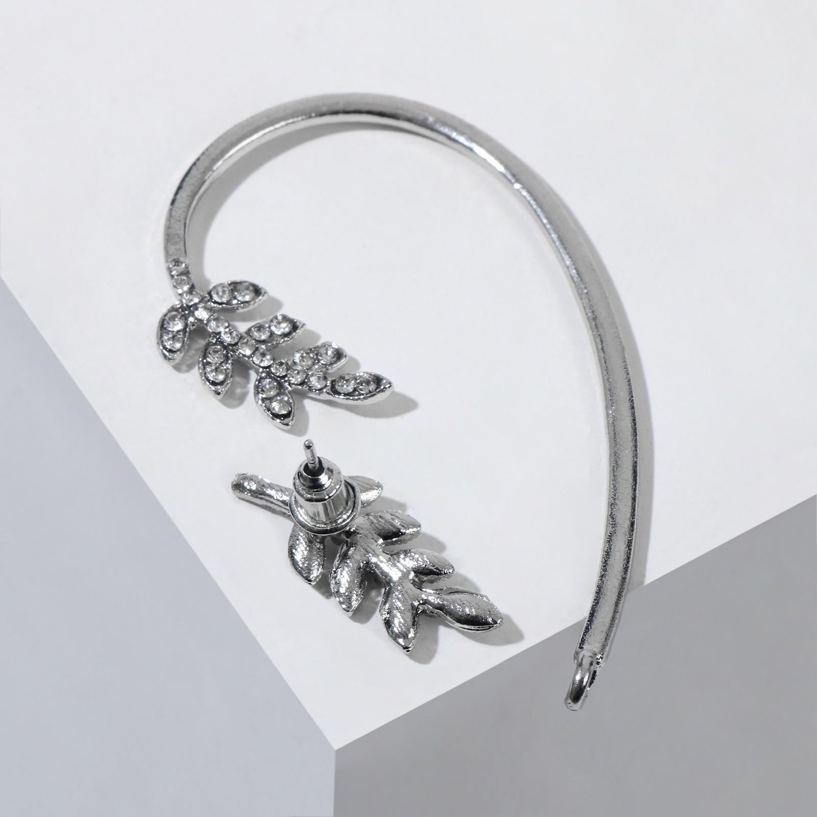 Набор серьги и каффа листья жемчуга, крепление пусет, цвет белый в серебре