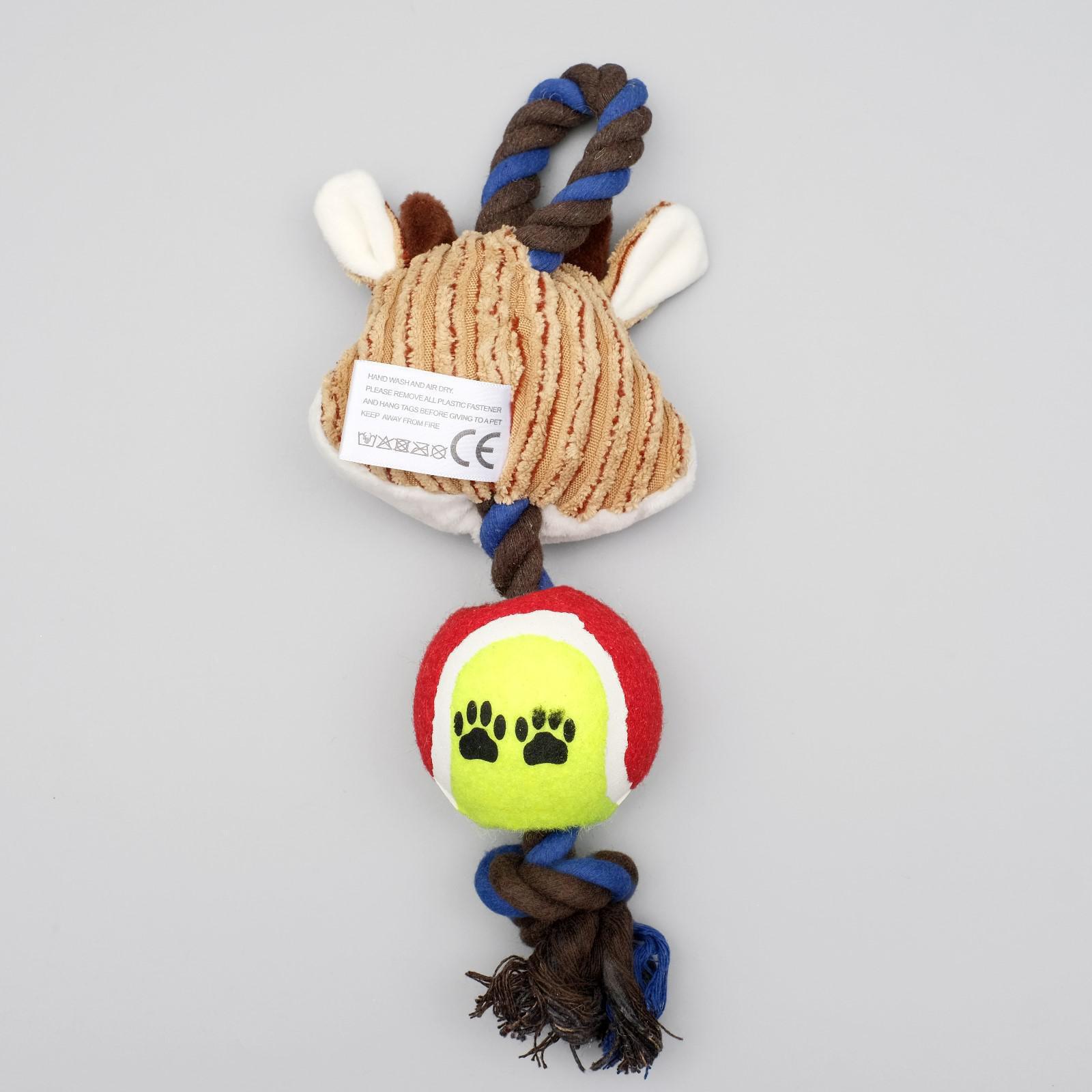 Игрушка для собак 3-в-1 "Корова": канатная, мягкая с пищалкой, войлочный мяч, 30 см
