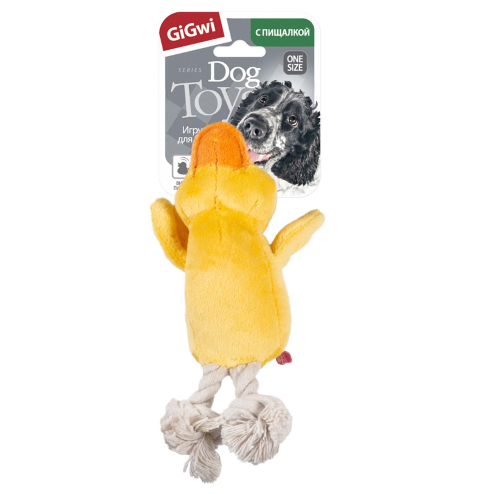 Мягкая игрушка для собак изготовлена из высококачественного текстильного материала с набивкой и дополнена прочной веревкой и пищалкой для привлечения внимания питомца. Игрушка подойдет для активных игр. Неабразивный, нетоксичный материал не ранит зубы и дёсны.