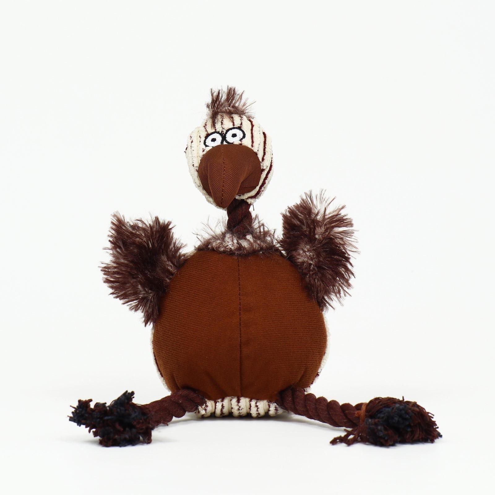 Оснащена одной пищалкой, которая располагается в голове , шея и хвост выполнены в виде крепких канатов, которые отлично подойдут для грызения, внутри тела игрушки есть шуршащий материал.