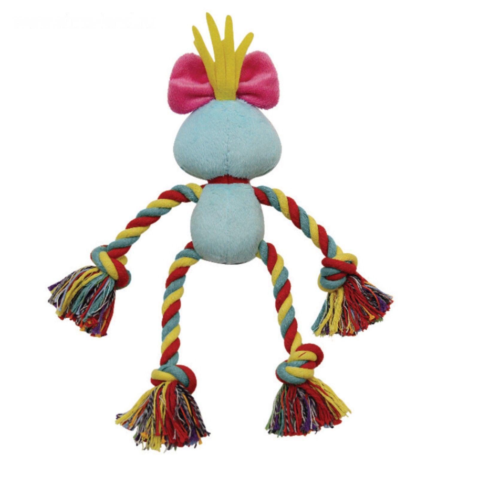 Безопасная, забавная игрушка для собак c пищалкой в виде известного персонажа Disney. Выполнена из мягкого плюша и хлопковых канатов. Подходит для тяговых игр. Развивает челюсть собаки. Цвет: голубой.